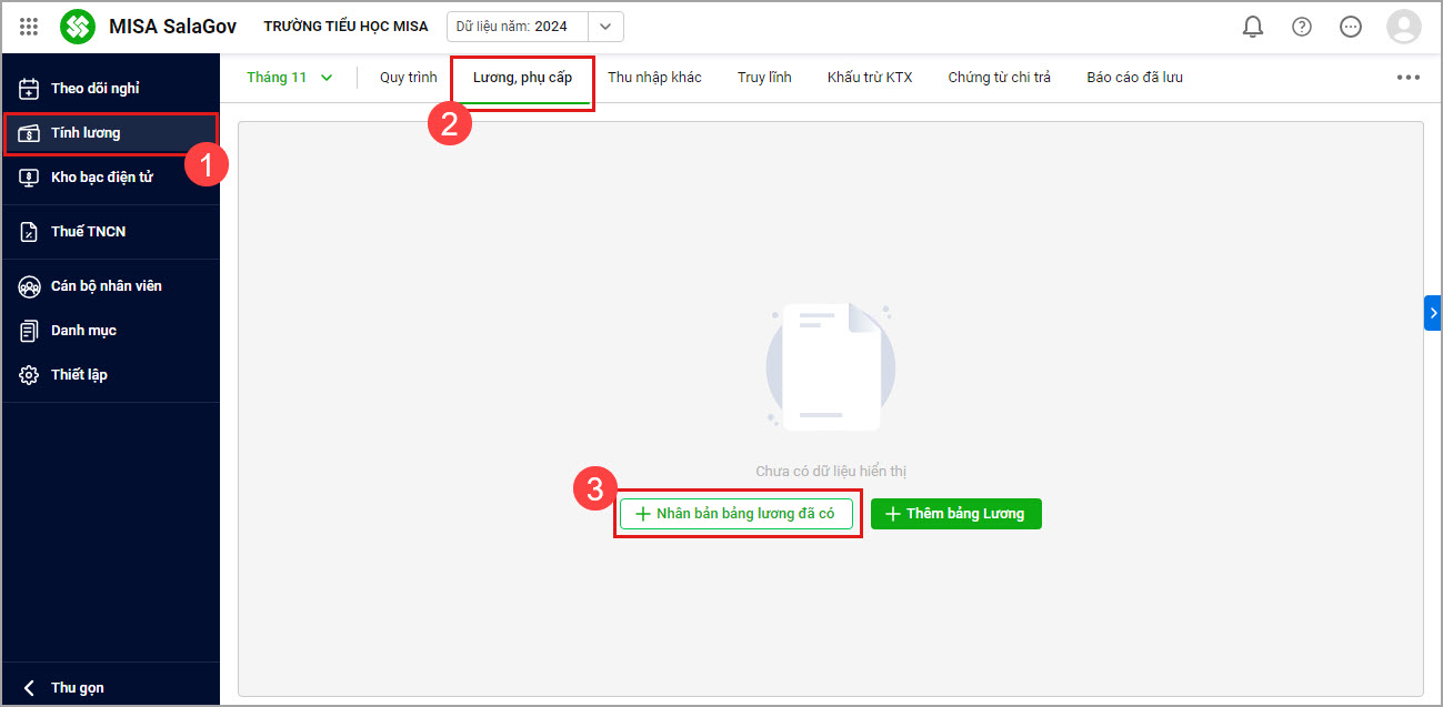 Nếu bảng lương tháng này của đơn vị giống với tháng trước anh/chị thực hiện sao chép bảng lương như sau: