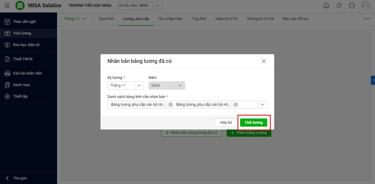 • Chọn Tính lương