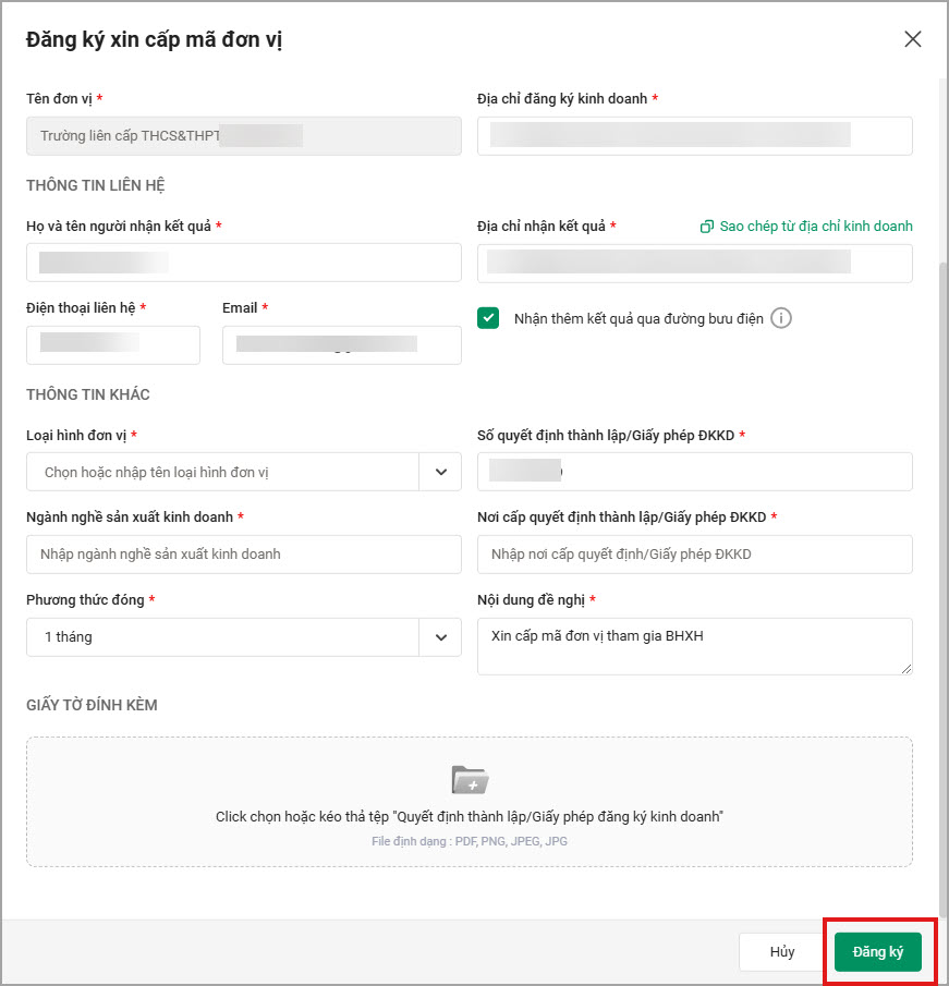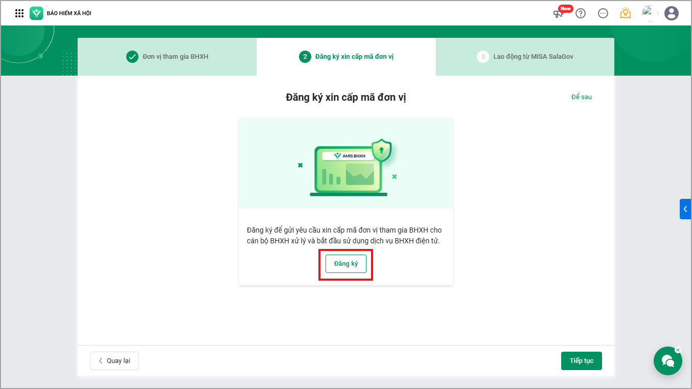 Nếu chưa có mã đơn vị anh/chị thực hiện đăng ký xin cấp mã đơn vị, anh/chị thực hiện như sau: