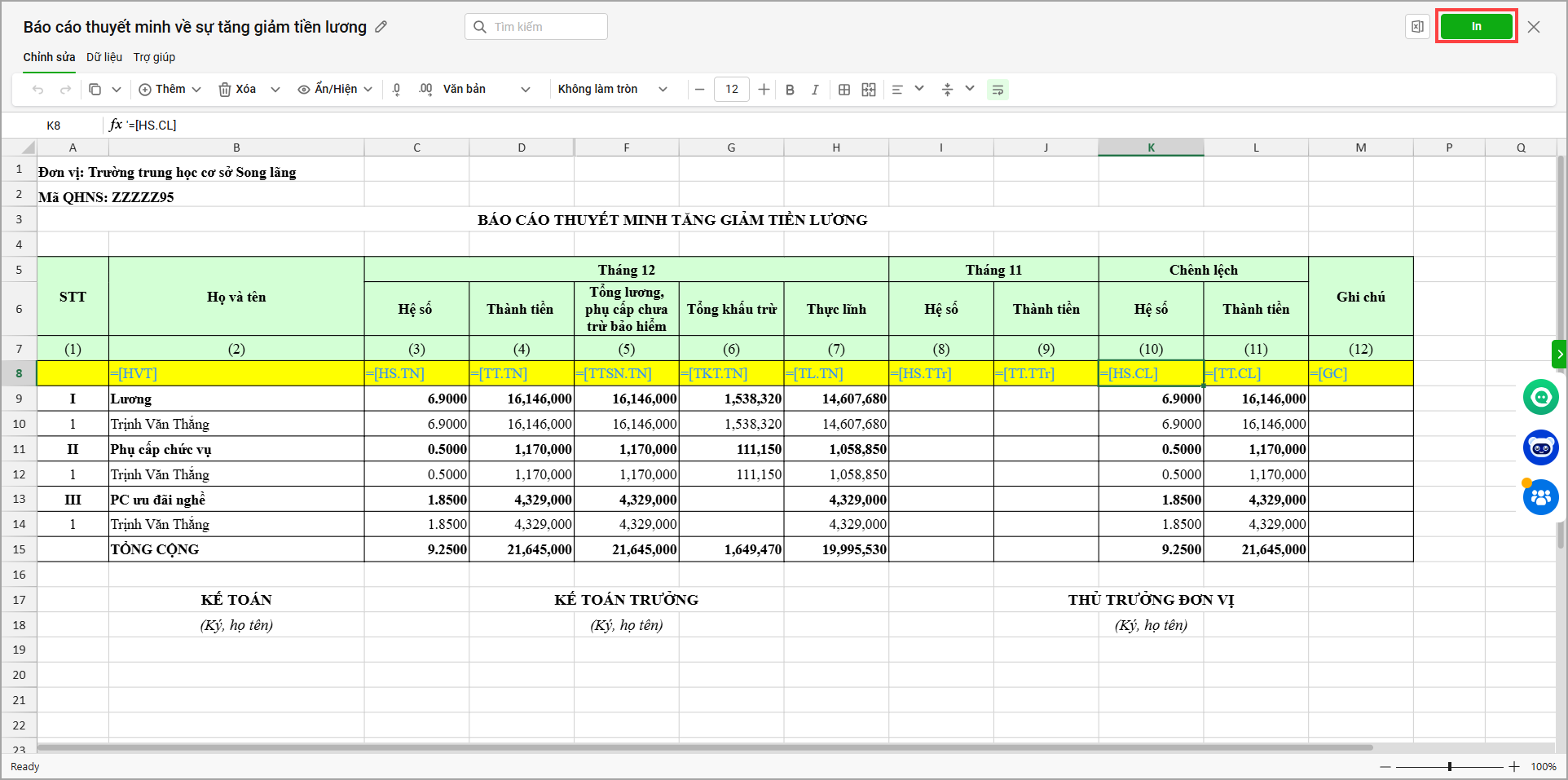5. Sau khi chỉnh sửa, nhấn In