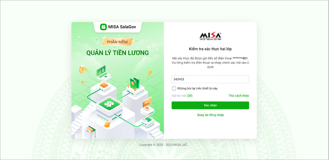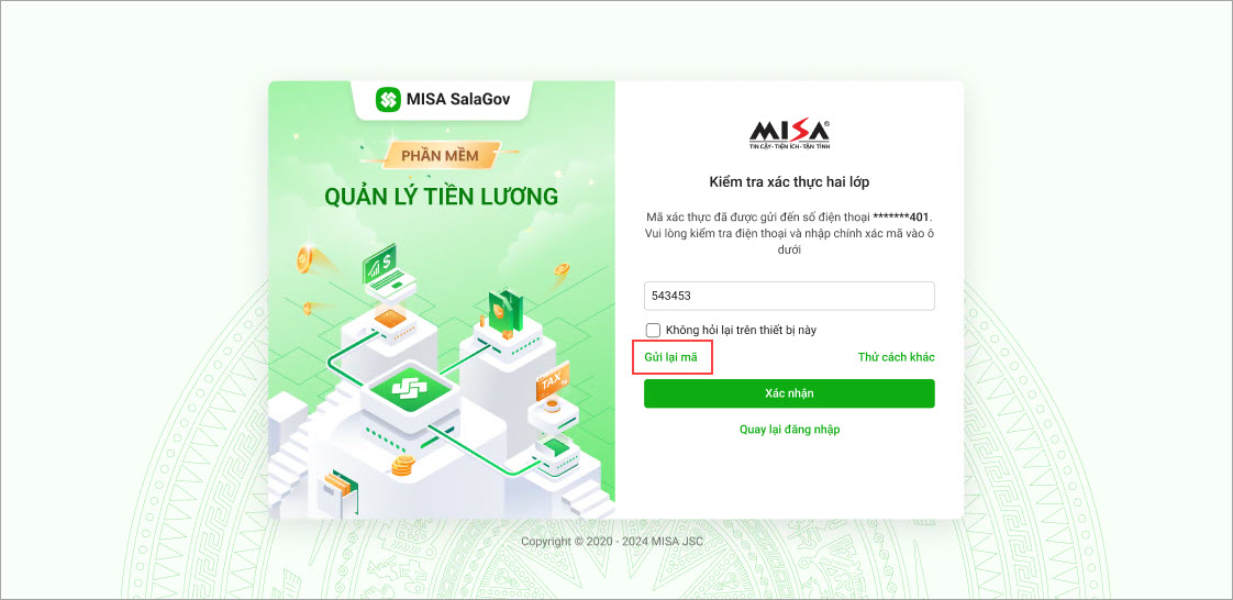 • Khi người dùng ấn vào nút này, hệ thống sẽ gửi lại mã bằng đúng phương thức xác thực 2 lớp mà người dùng đã chọn (email/SĐT).