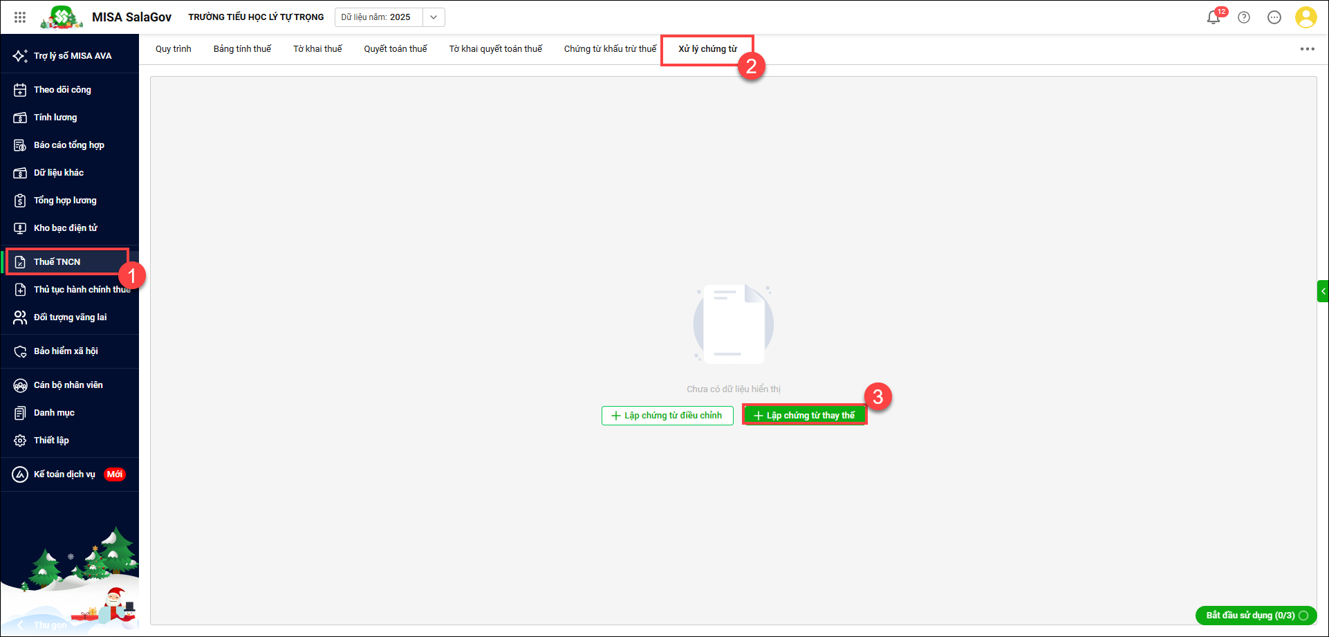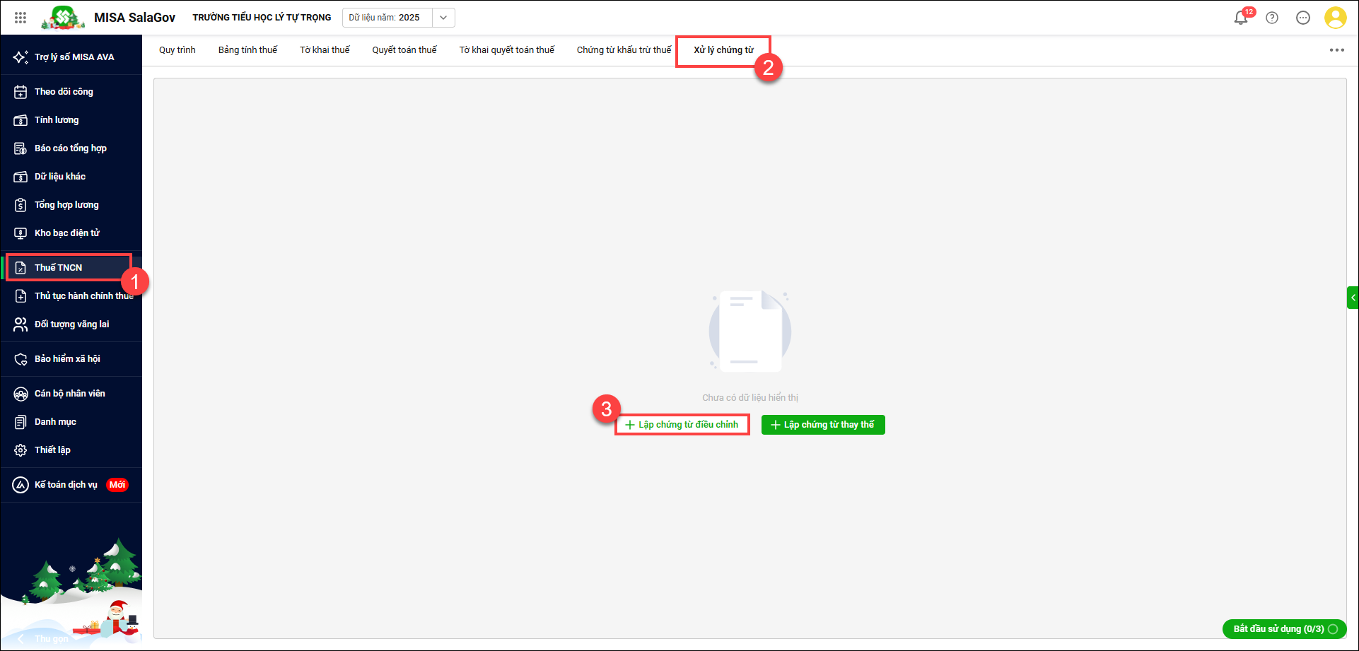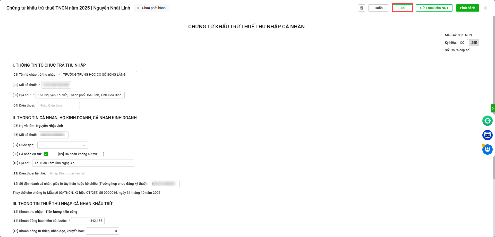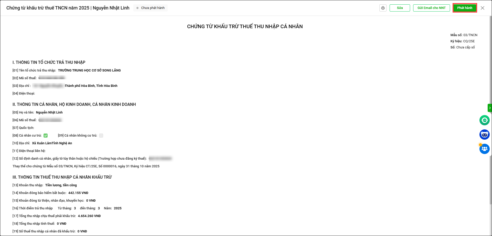 - Vào Thuế TNCN/Xử lý chứng từ
