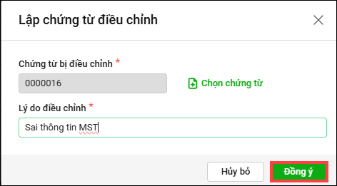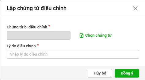 - Chọn Lập chứng từ điều chỉnh