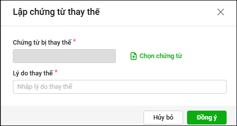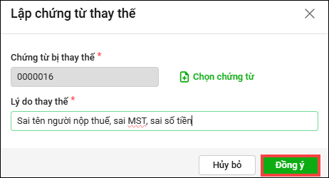 - Chọn Lập chứng từ thay thế