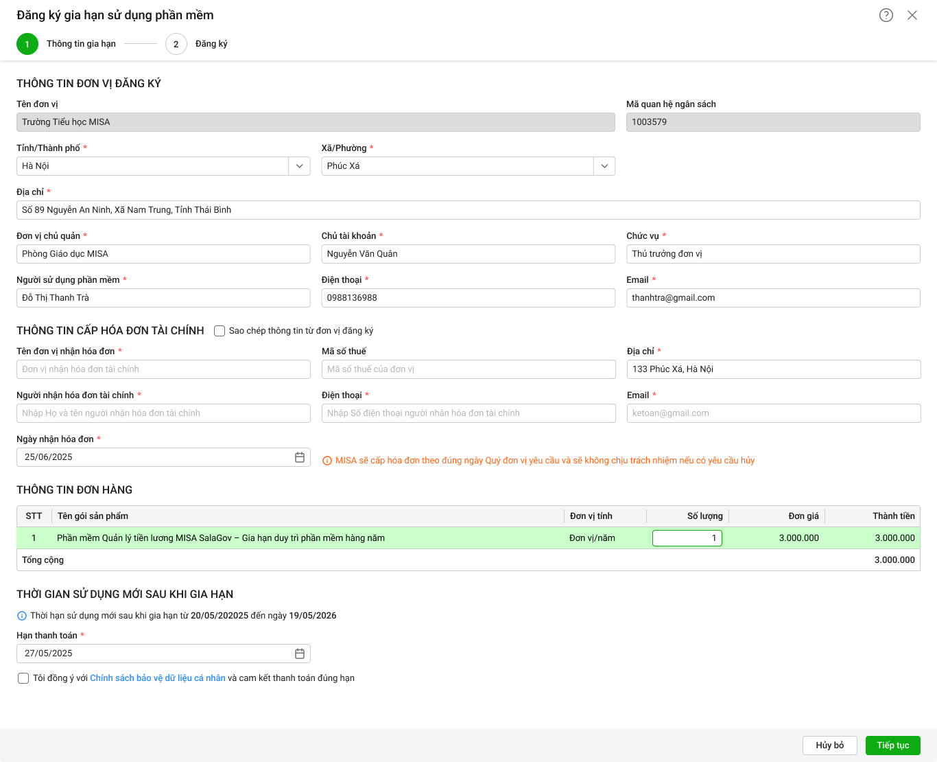 3.Khi đăng ký gia hạn sử dụng phần mềm, hệ thống bổ sung ô Tôi đồng ý với Chính sách bảo vệ dữ liệu cá nhân và cam kết thanh toán đúng hạn