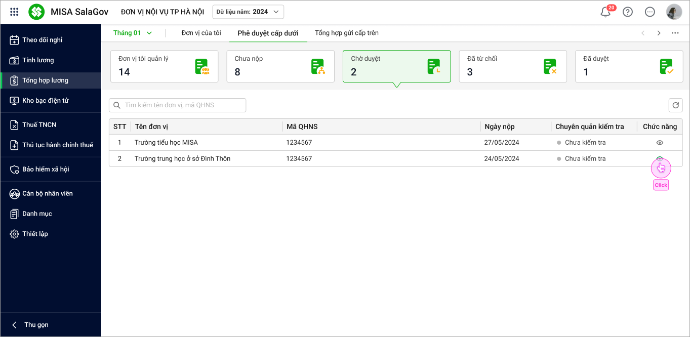 Hỗ trợ chuyên viên đơn vị chủ quản kiểm tra lần lượt bảng lương của từng đơn vị nhanh chóng, tránh bỏ sót hoặc quên bước duyệt tiếp.