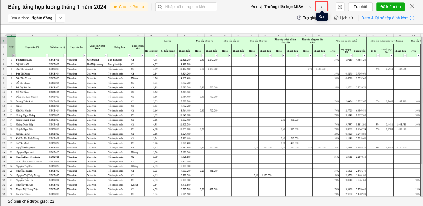 - Cho phép xem tiếp các bảng tổng hợp lương chưa kiểm tra và xem lại các bảng tổng hợp lương đã kiểm tra.