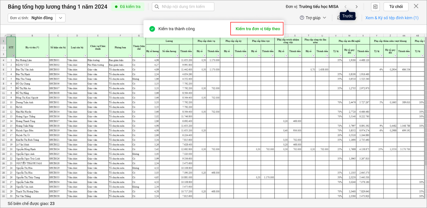 - Khi kiểm tra xong, danh sách vẫn giữ nguyên vị trí trước khi nhấn kiểm tra, giúp người dùng không bị lạc vị trí khi thao tác nhiều đơn vị liên tiếp.