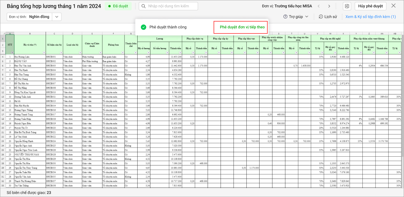 - Khi duyệt xong, danh sách vẫn giữ nguyên vị trí trước khi nhấn duyệt, giúp người dùng không bị lạc vị trí khi thao tác nhiều đơn vị liên tiếp.