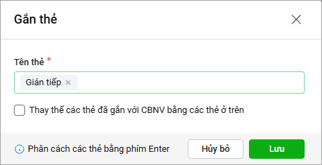 • Nhập Tên thẻ cần gắn. Có thể nhập nhiều tên thẻ cùng lúc.