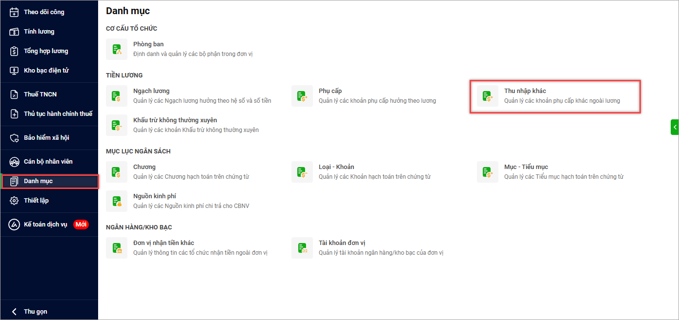 - Thiết lập công thức tính thu nhập khác theo đúng công thức đang áp dụng tại đơn vị.