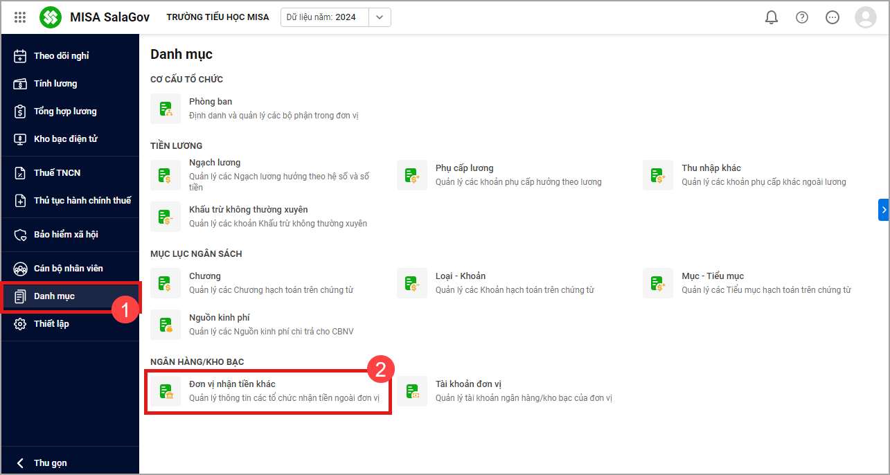 Bước 1: Vào Danh mục\Đơn vị nhận tiền khác.