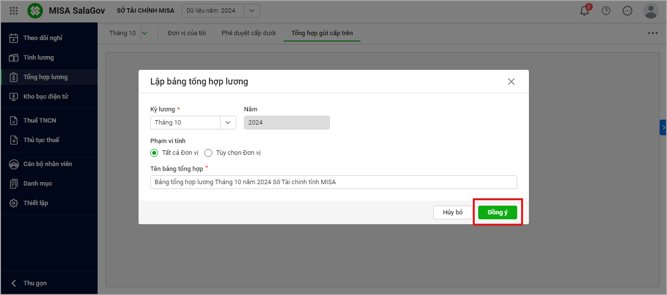 3. Phần mềm sẽ tổng hợp lương của đơn vị cấp dưới
