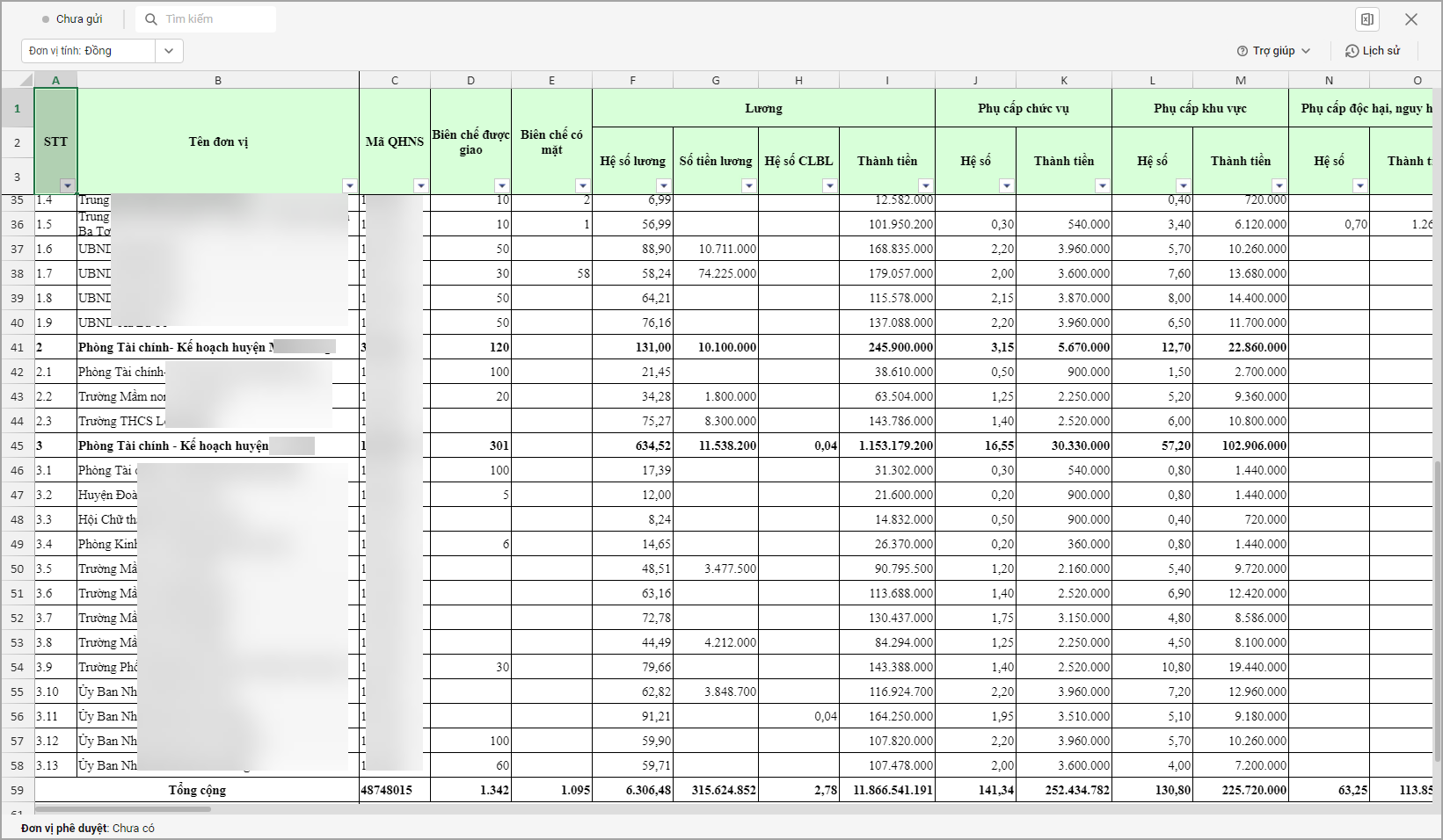 - Chưa nộp: Danh sách đơn vị chưa nộp bảng tổng hợp lương