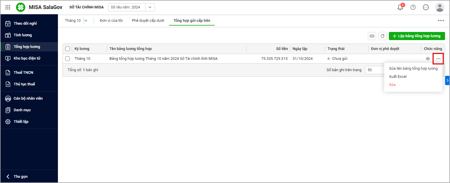 4. Sau khi lập xong bảng tổng hợp lương, tại danh sách bảng tổng hợp lương, anh/chị có thể sửa/xóa