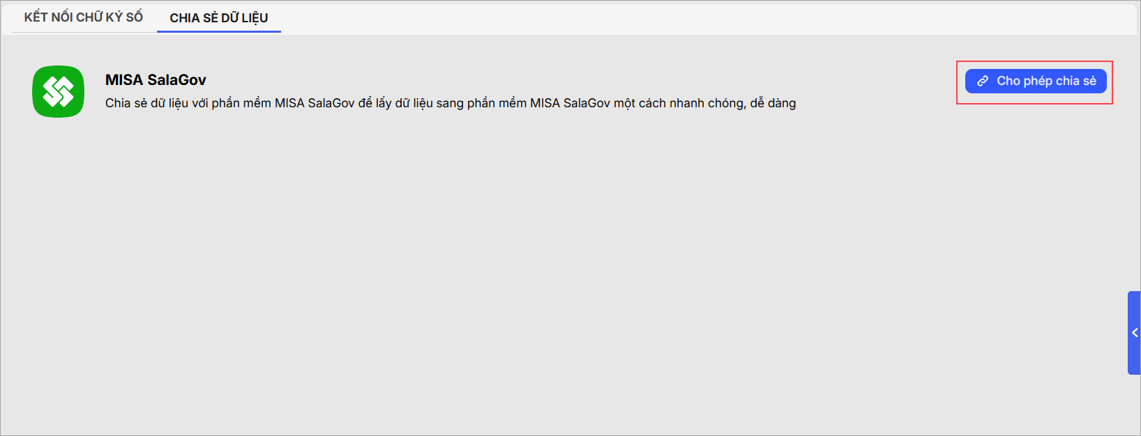 3. Chon Cho phép chia sẻ để chia sẻ dữ liệu với phần mềm MISA SalaGov