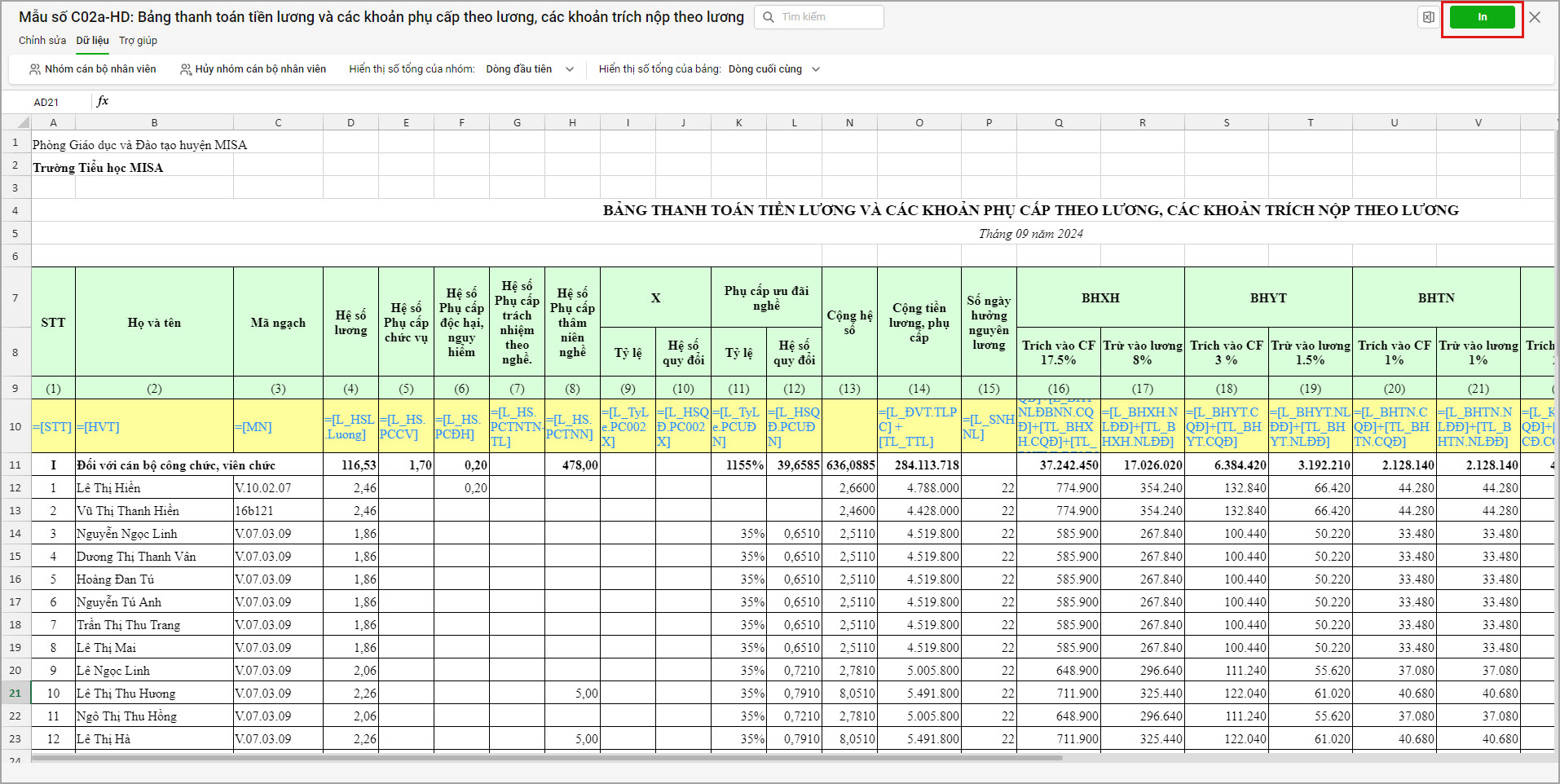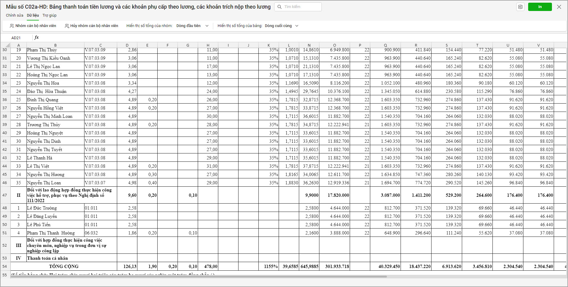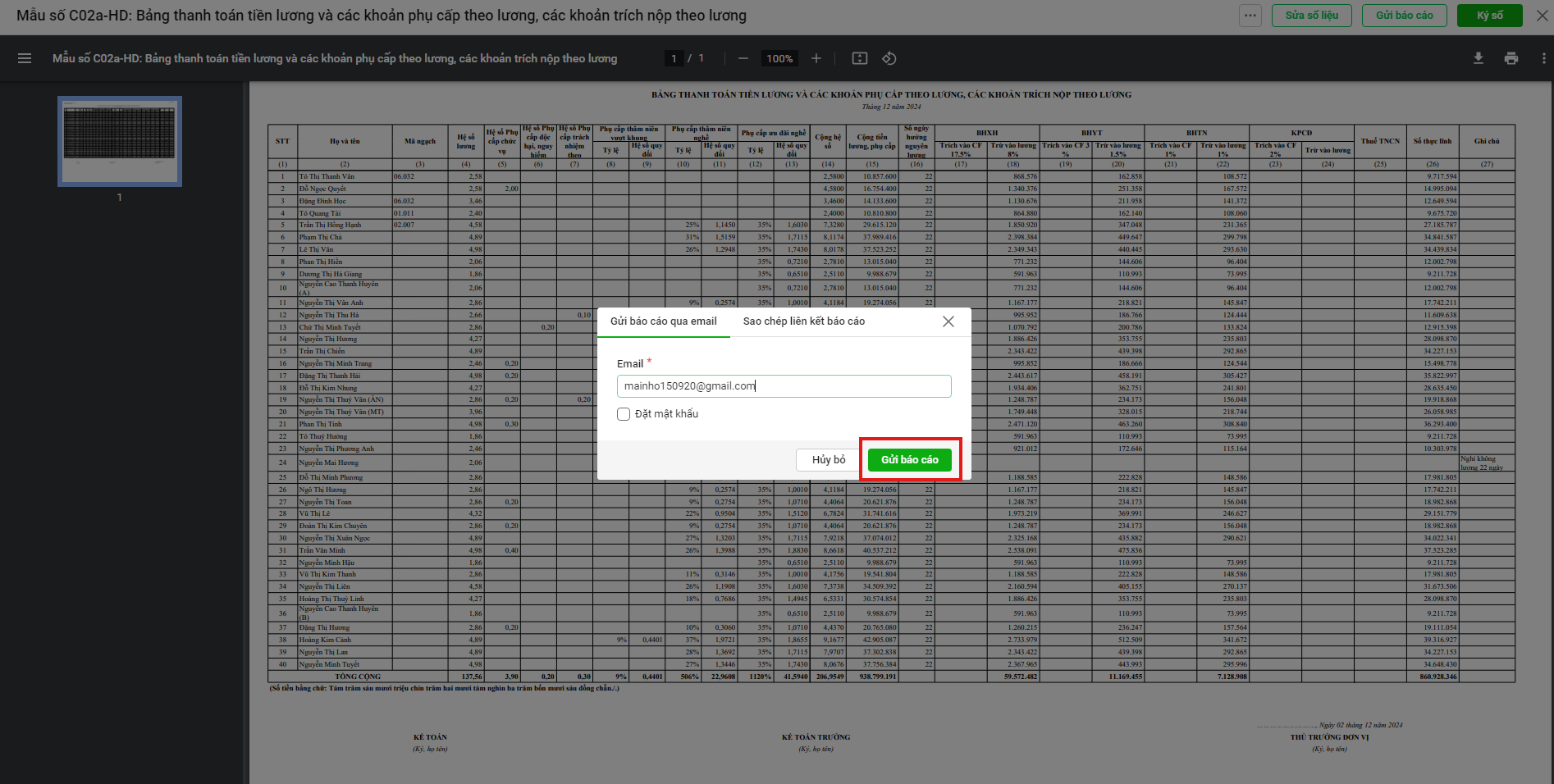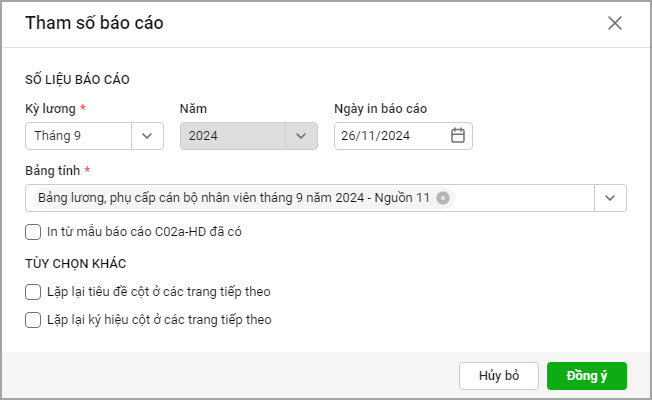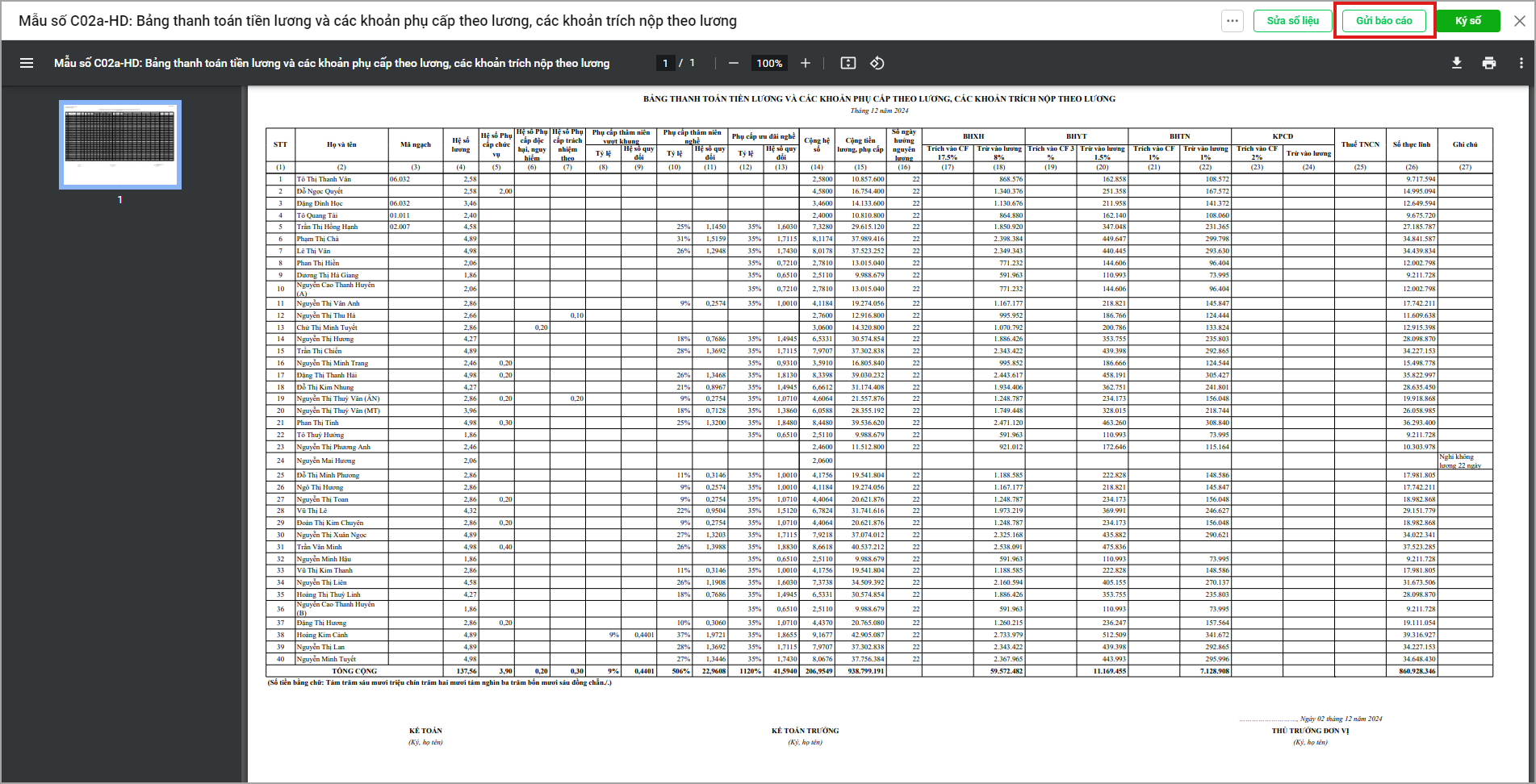 Sau khi lập xong các bảng tính phát sinh trong kỳ lương (ví dụ: bảng lương, phụ cấp, bảng thu nhập khác, bảng khấu trừ không thường xuyên,…), kế toán có thể lập báo cáo để kèm theo bộ Hồ sơ chi trả lương, nộp lên cấp trên hoặc lưu trữ lại số liệu tại đơn vị