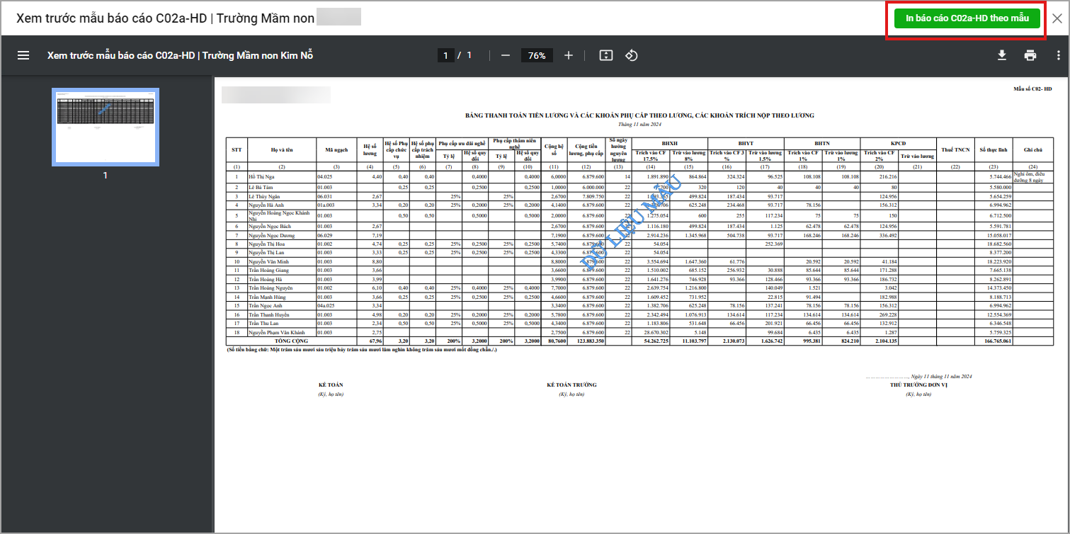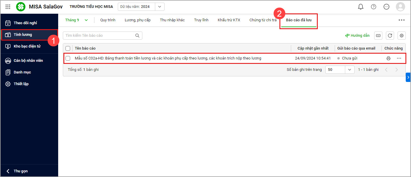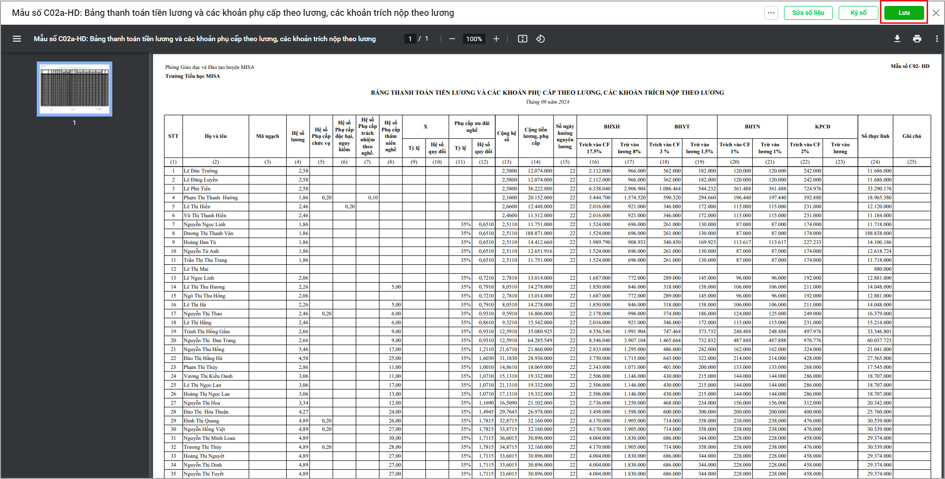 - Tại màn hình báo cáo anh/chị chọn Lưu