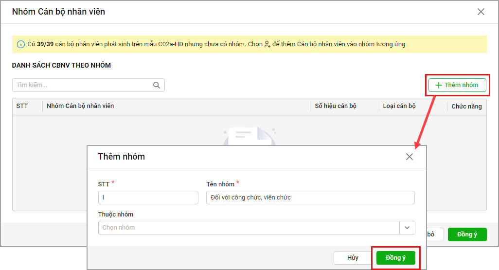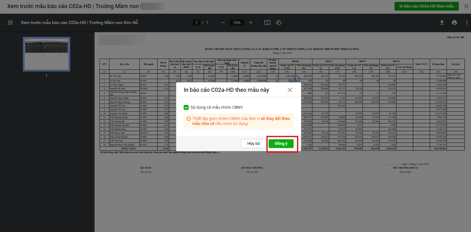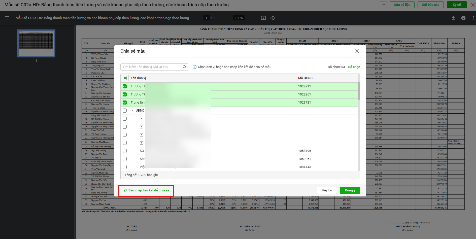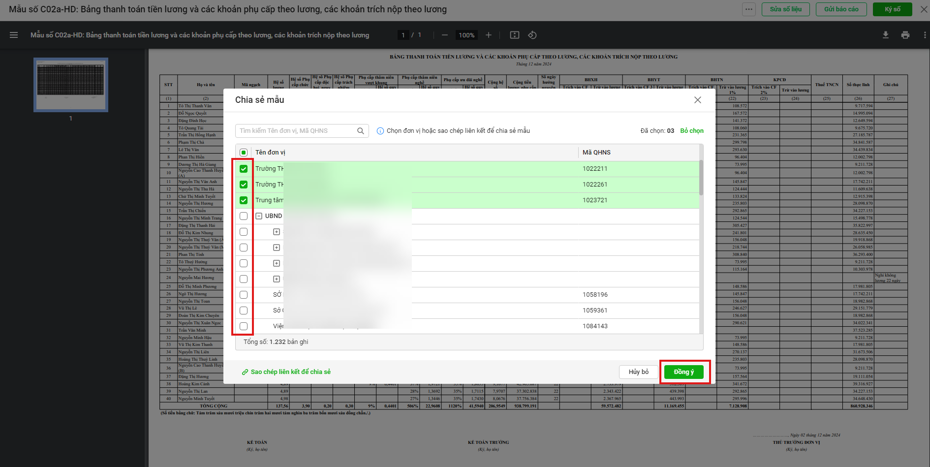 - Tích chọn đơn vị muốn chia sẻ báo cáo, chọn Đồng ý