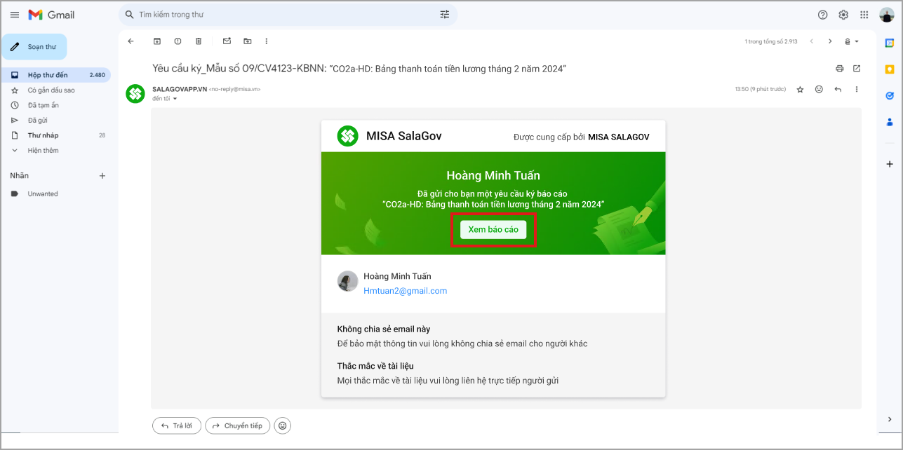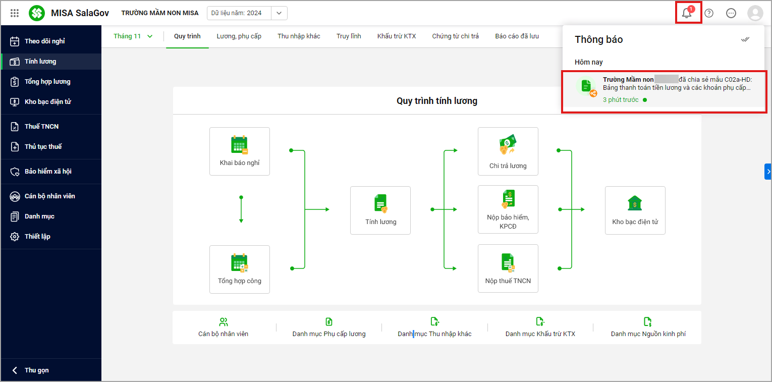 - Lúc này đơn vị nhận báo cáo được chia sẻ sẽ nhận được thông báo