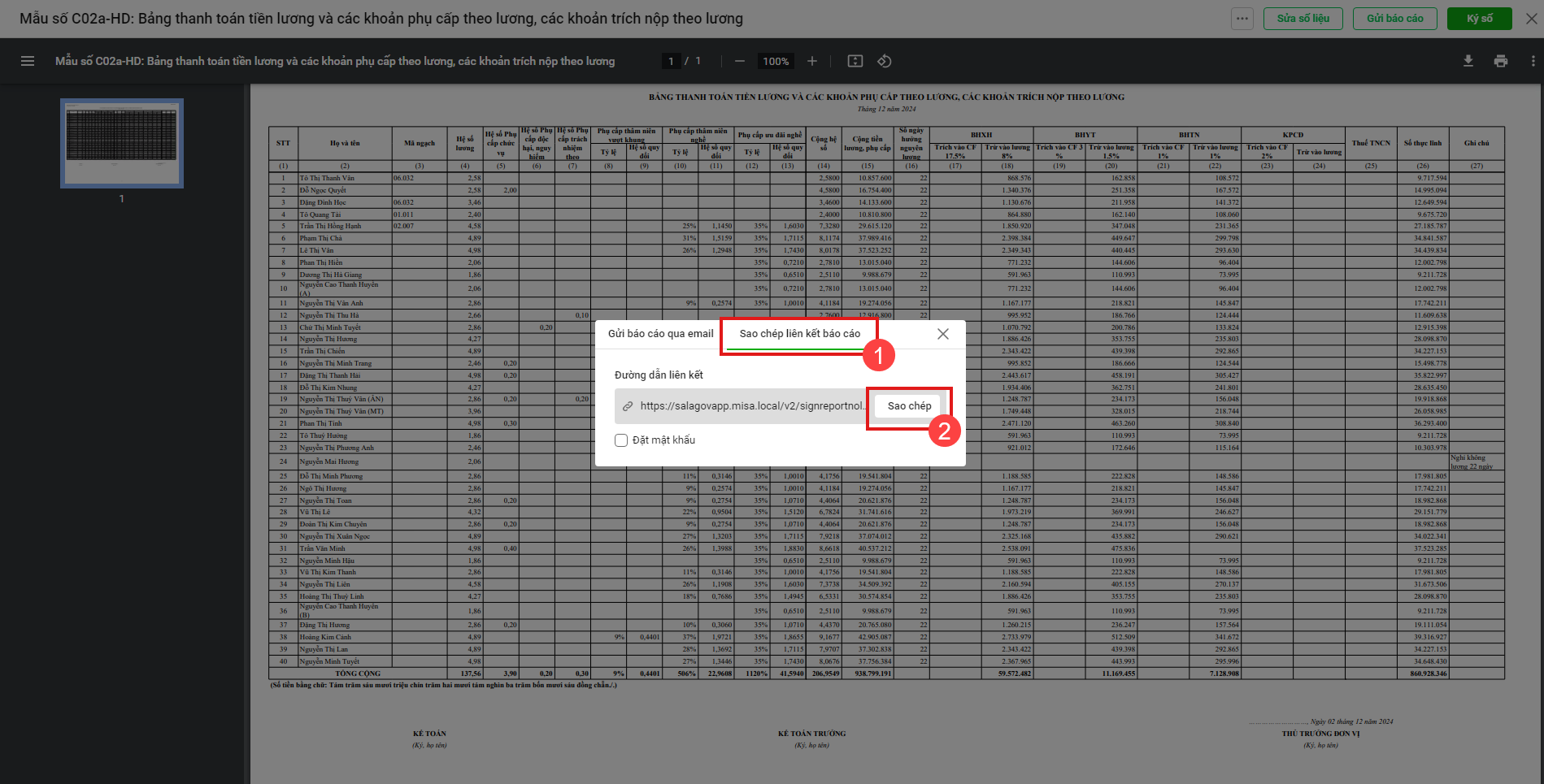 - Hoặc Chọn Sao chép liên kết để sao chép link báo cáo để gửi cho đơn vị cần chia sẻ