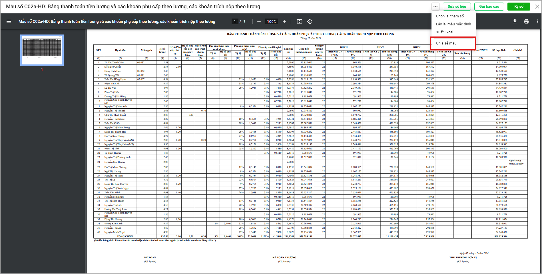 Sau khi lập xong báo cáo để chia sẻ mẫu cho các đơn vị khác, anh/chị thực hiện như sau: