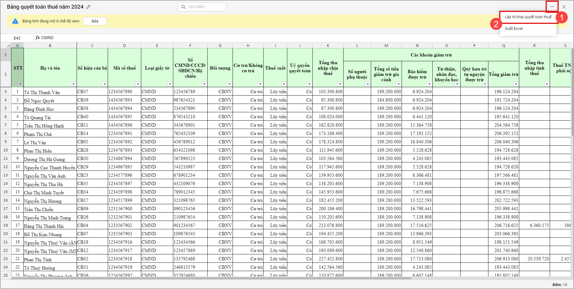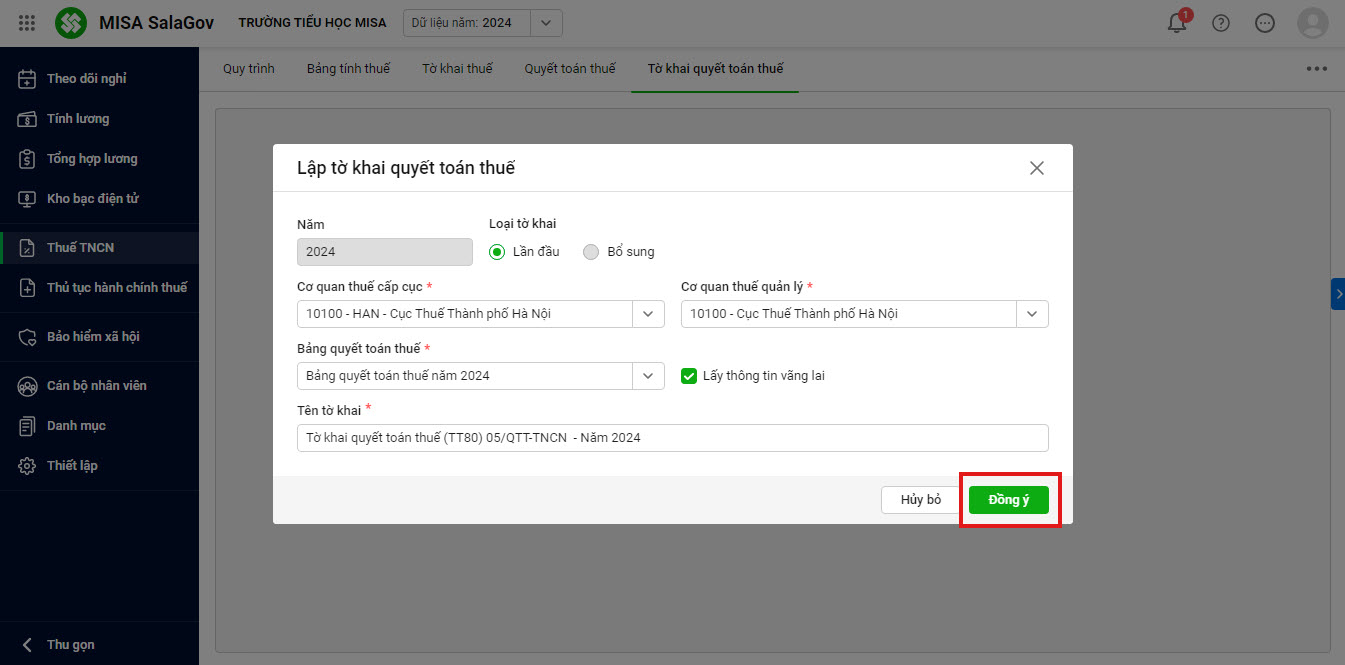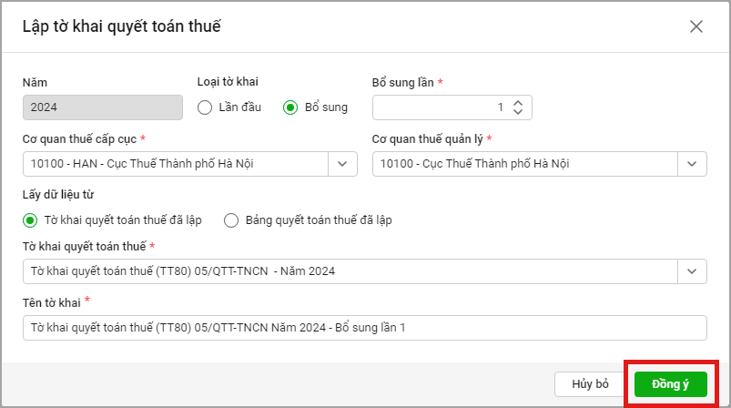 1. Sau khi lập bảng quyết toán thuế, anh/chị có thể lập luôn tờ khai thuế