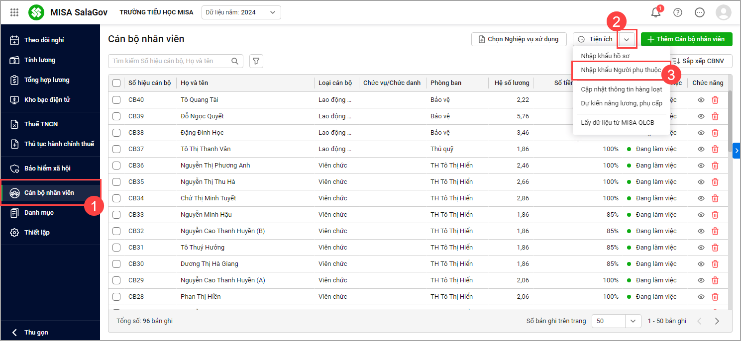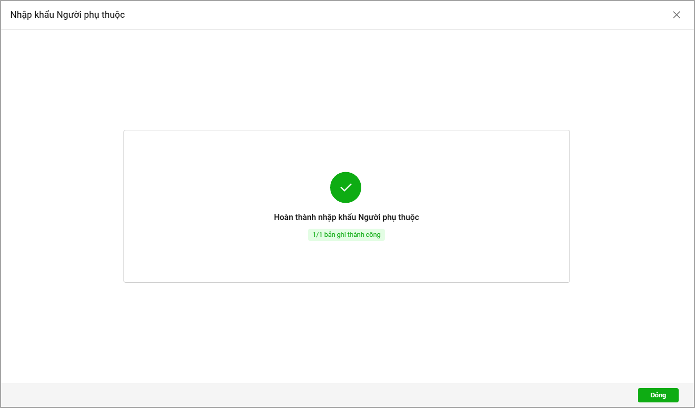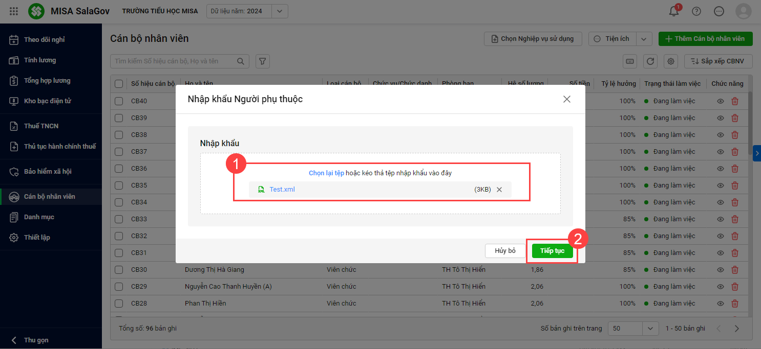 Tại menu Cán bộ nhân viên\Nhập khẩu Người phụ thuộc
