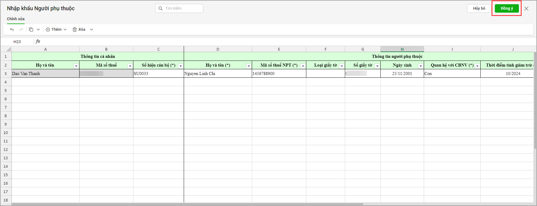 • Phần mềm hiển thị thông tin người phụ thuộc từ file XML, anh/chị chọn Đồng ý