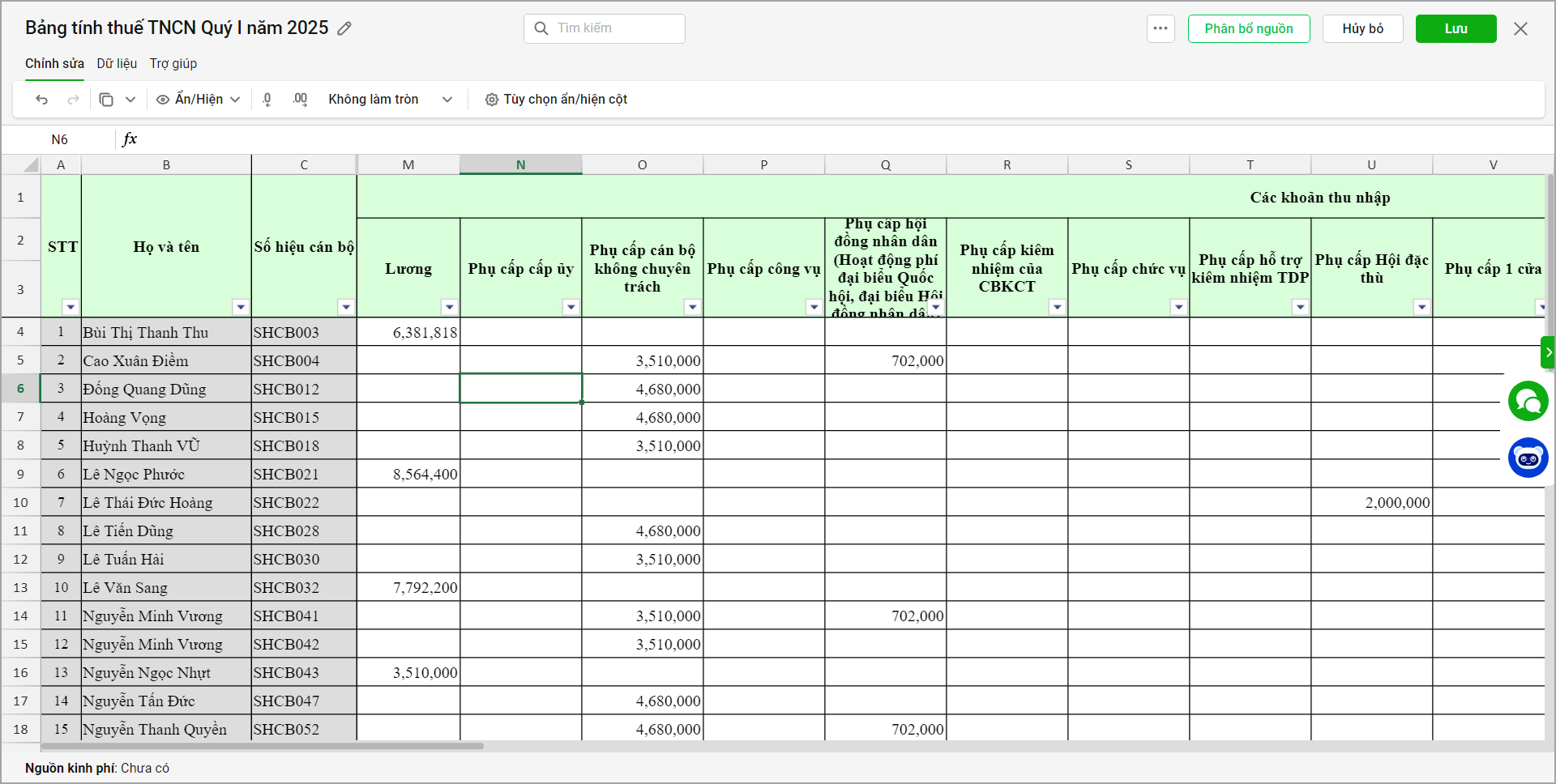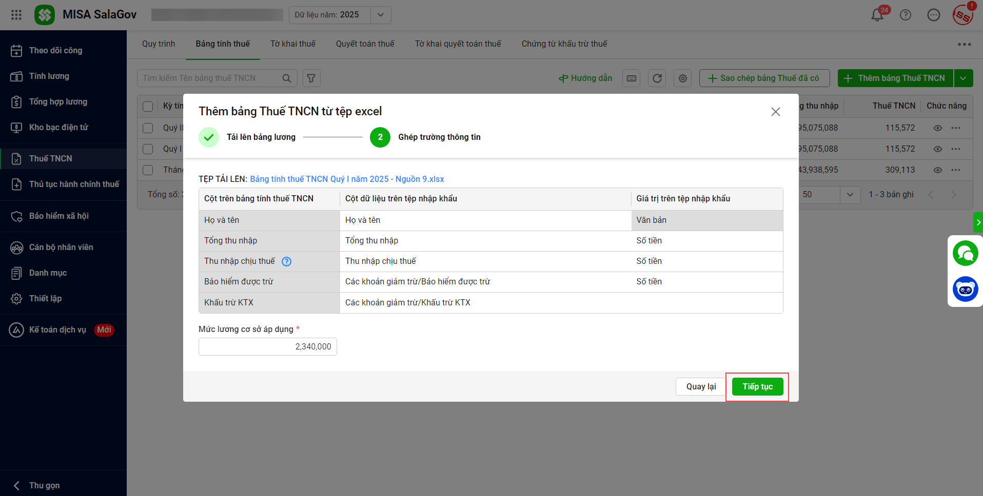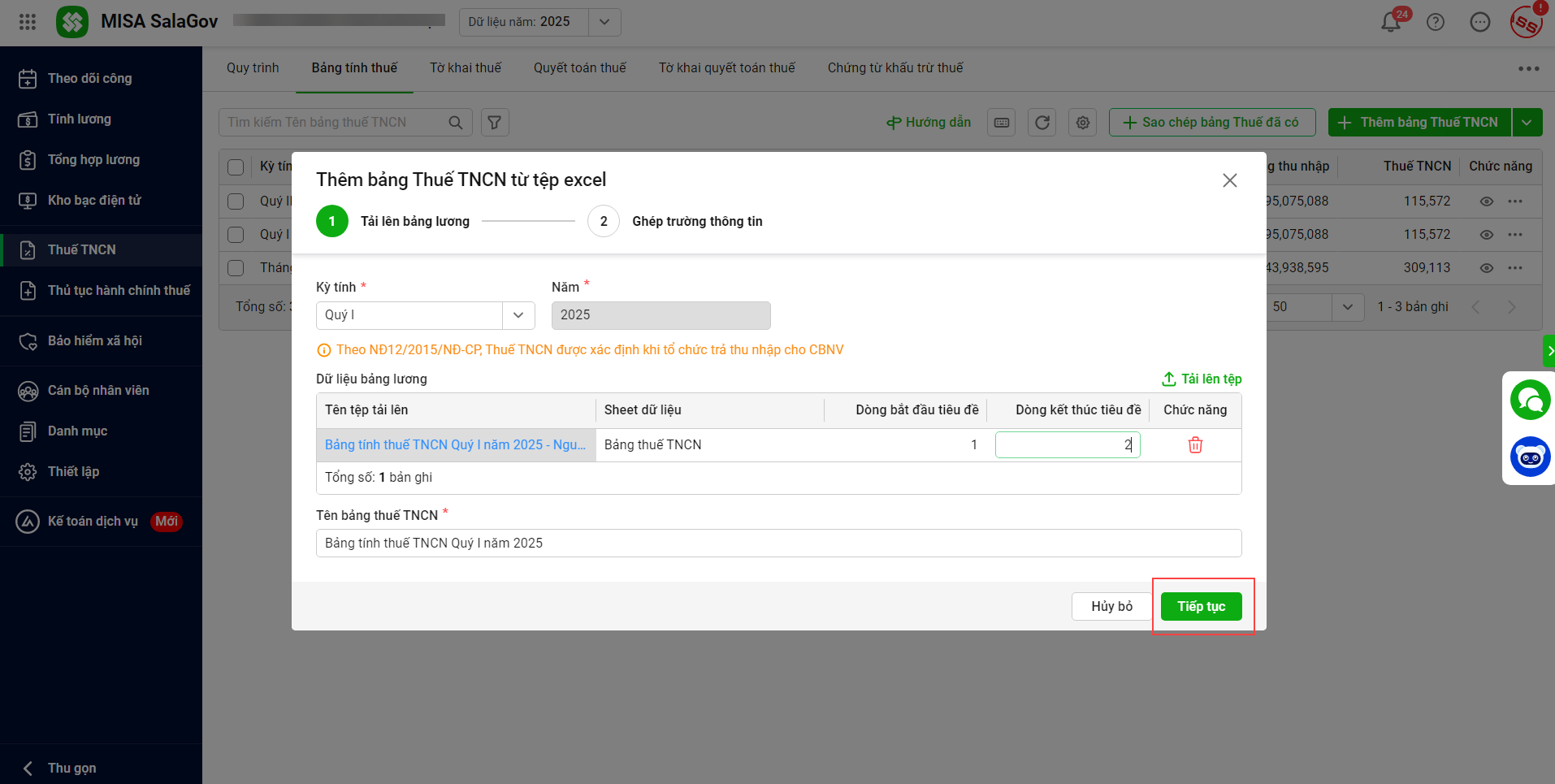 Trường hợp 3: Thêm bảng Thuế TNCN từ tệp excel