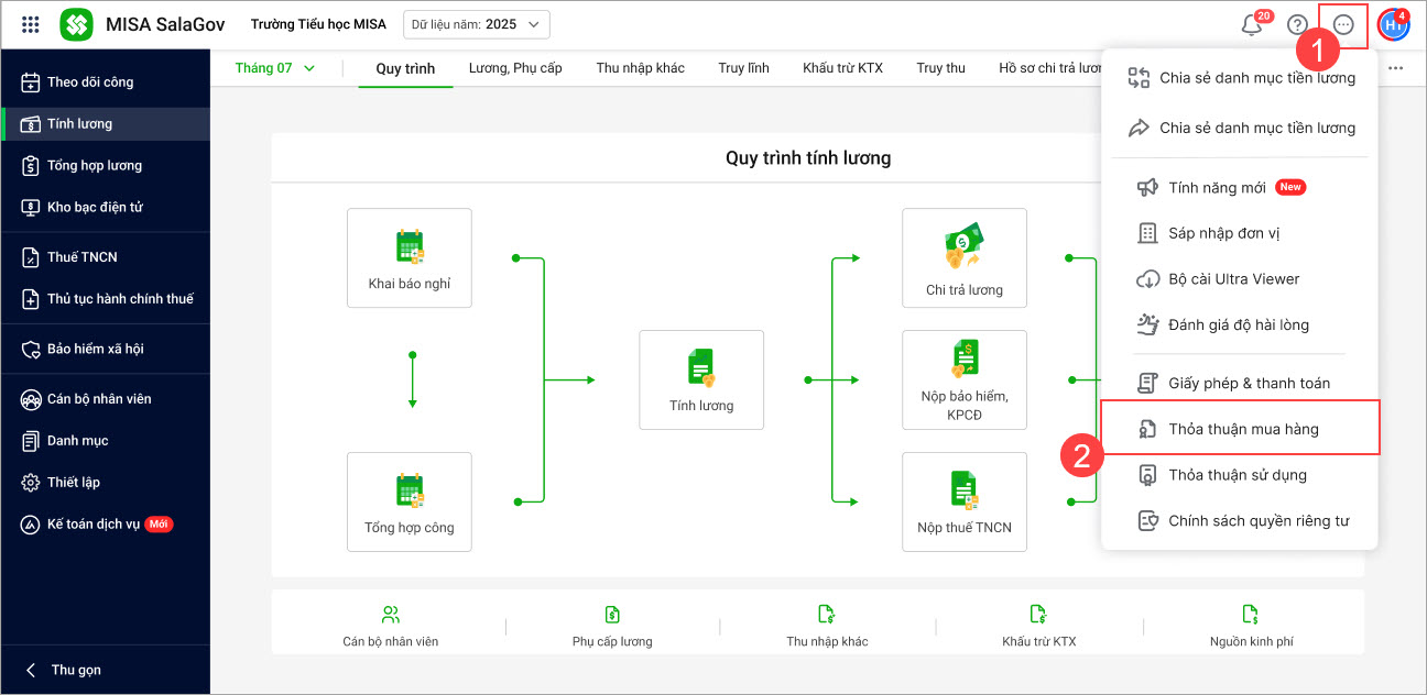 Ngoài ra, anh/chị cũng có thể vào Tiện ích\Thỏa thuận mua hàng để xem lại.