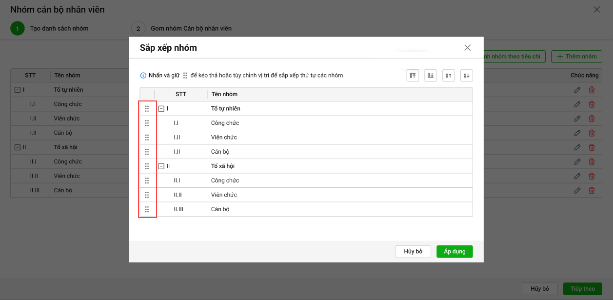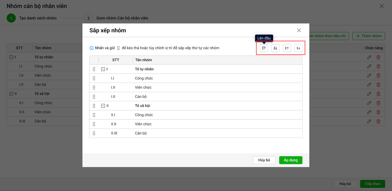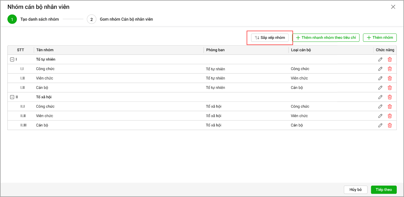 Khi tạo danh sách nhóm, phần mềm sẽ bổ sung tiện ích Sắp xếp nhóm.