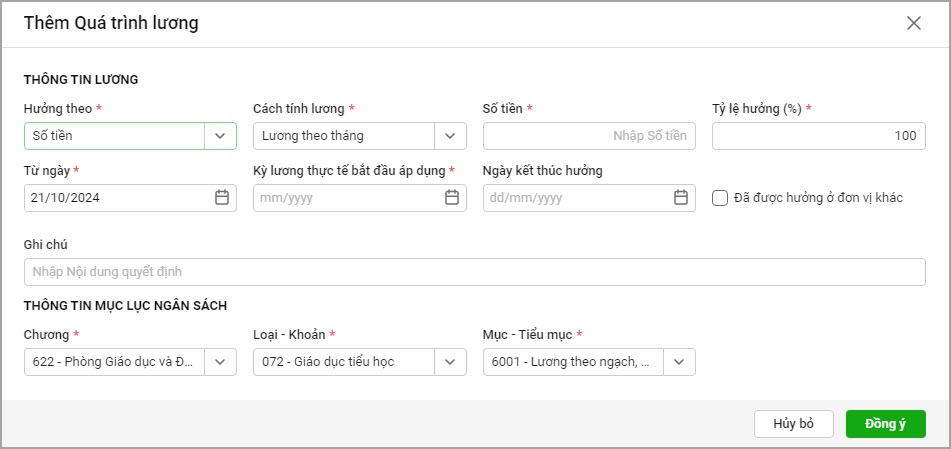 - Từ ngày: Ghi trong quyết định Lương, Quyết định phụ cấp