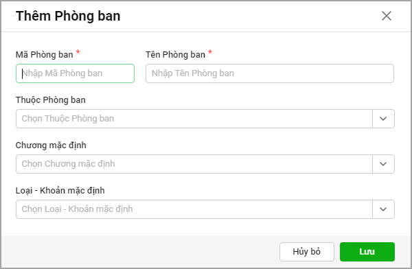 - Khai báo thông tin phòng ban tương ứng, sau đó nhấn Lưu.