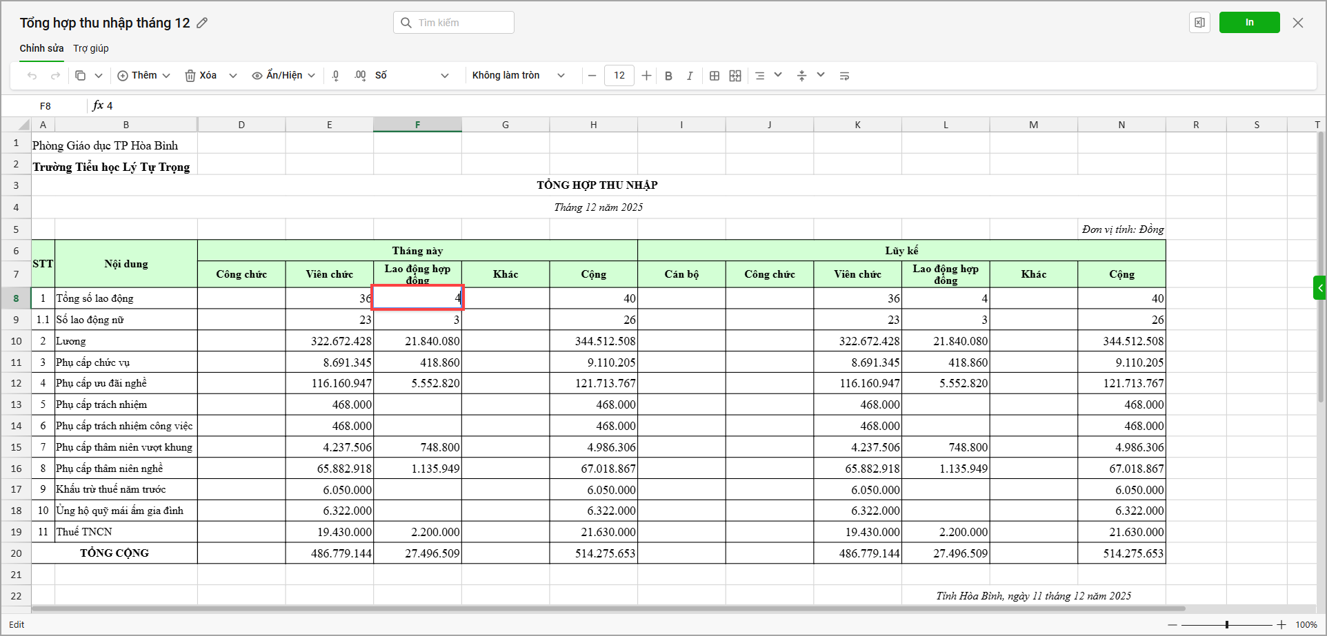 4. Lập báo cáo tổng hợp thu nhập theo loại cán bộ