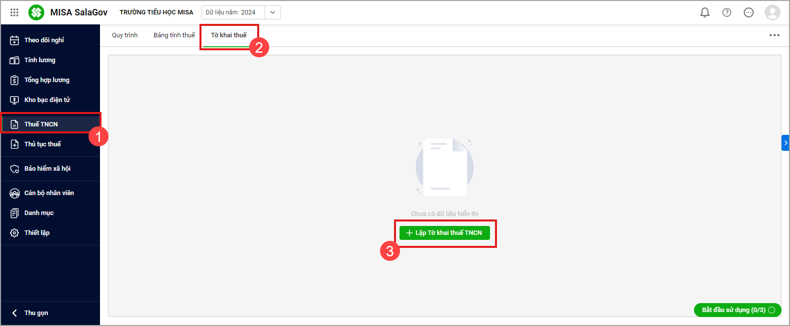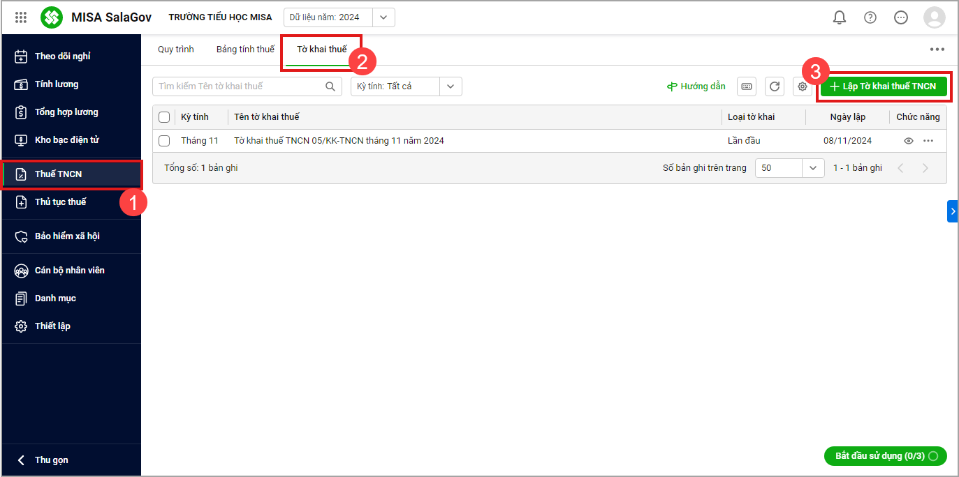1. Anh/chị vào menu Thuế TNCN\Tờ khai thuế\Lập Tờ khai thuế TNCN
