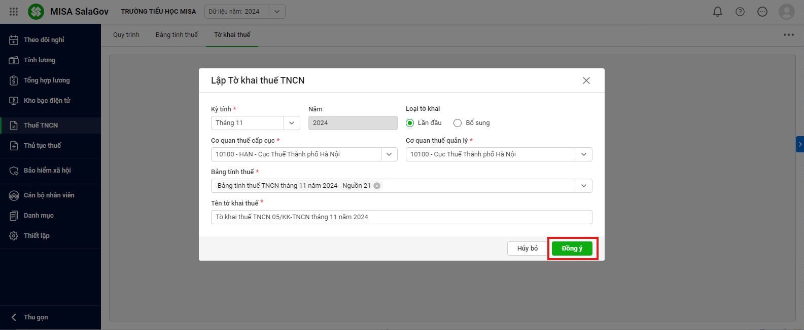 2. Khai báo thông tin tham số để làm căn cứ lập tờ khai thuế TNCN
