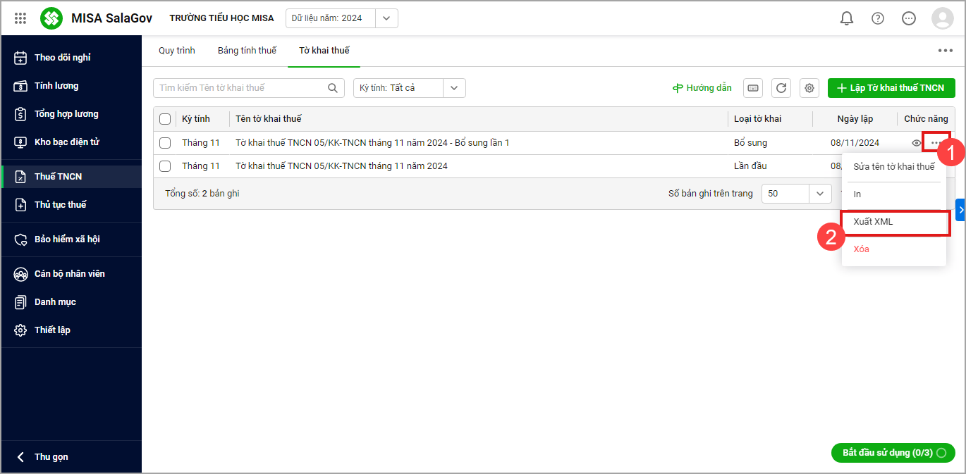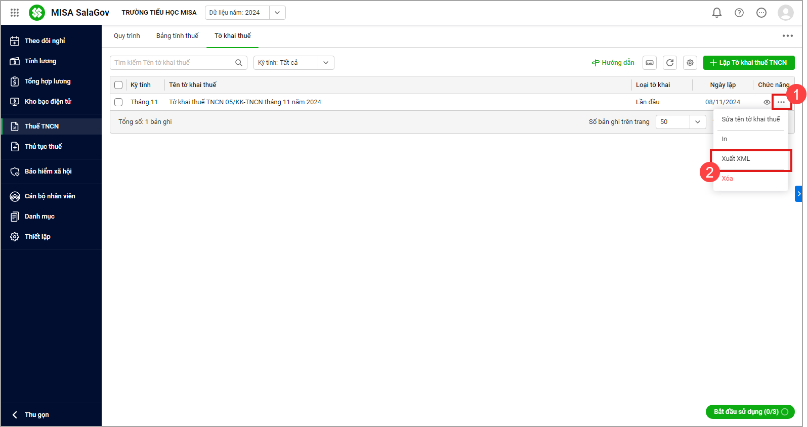 Hoặc tại danh sách tờ khai thuế TNCN anh/chị chọn biểu tượng…, chọn Xuất XML