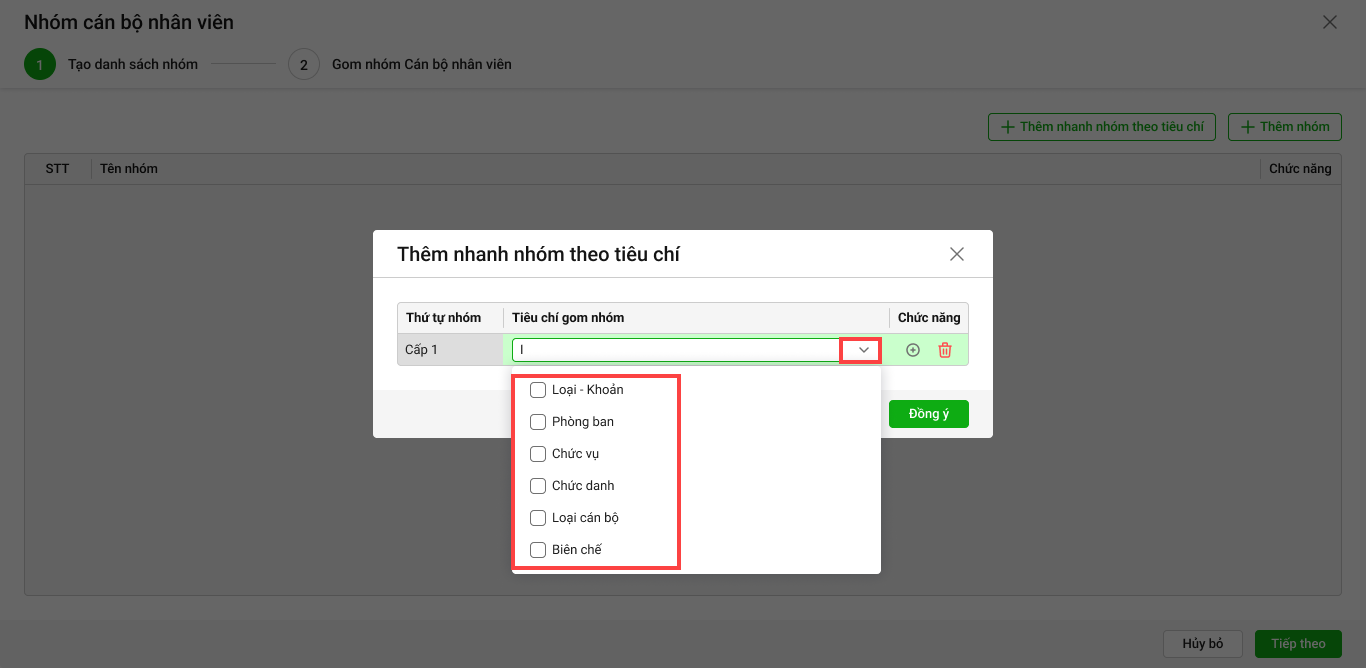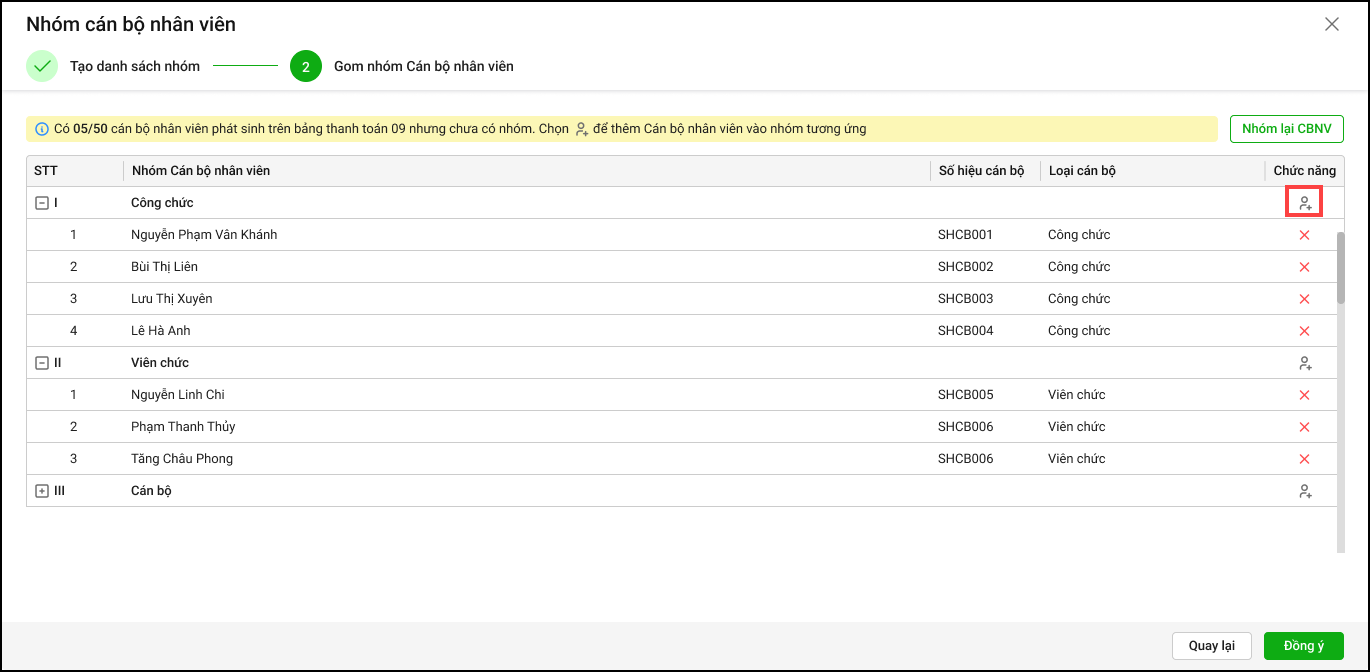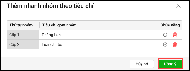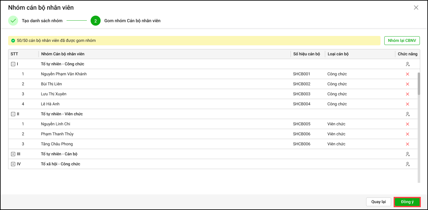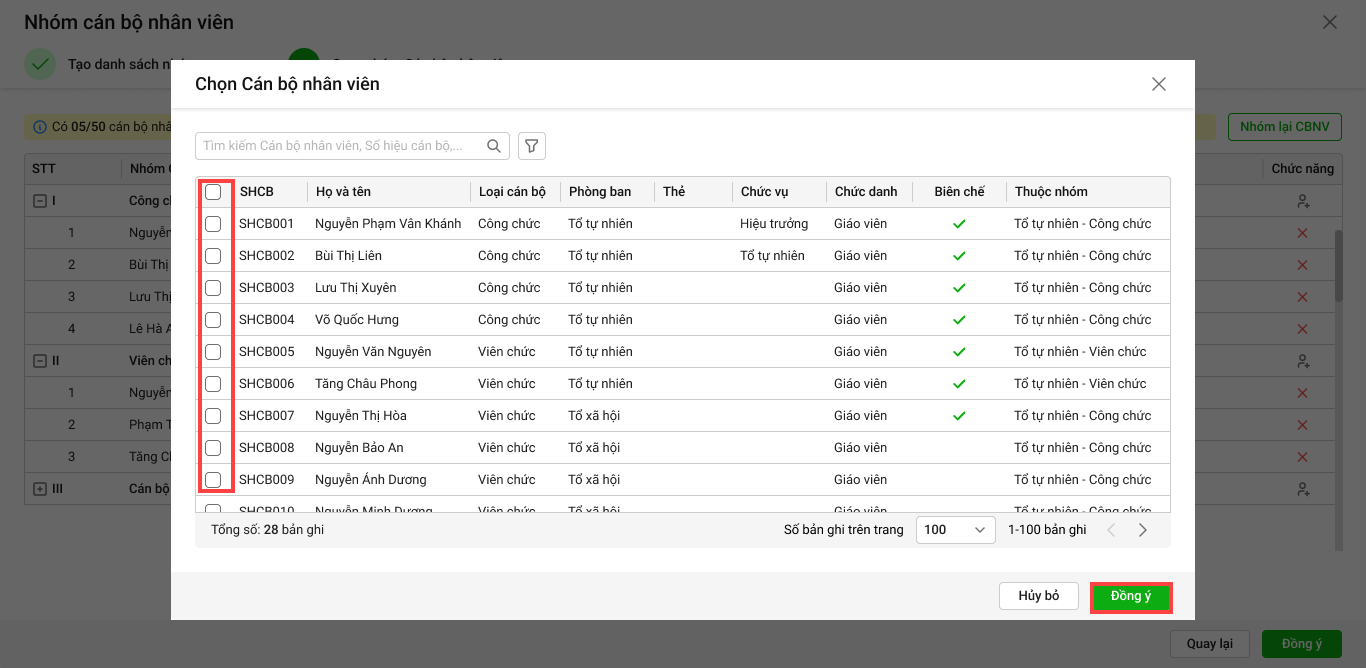 - Anh/chị tích chọn Sử dụng cả mẫu nhóm CBNV đó nhấn Đồng ý