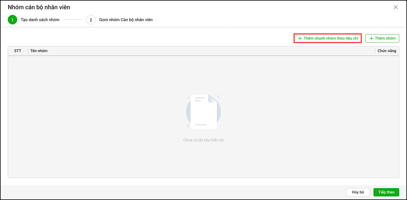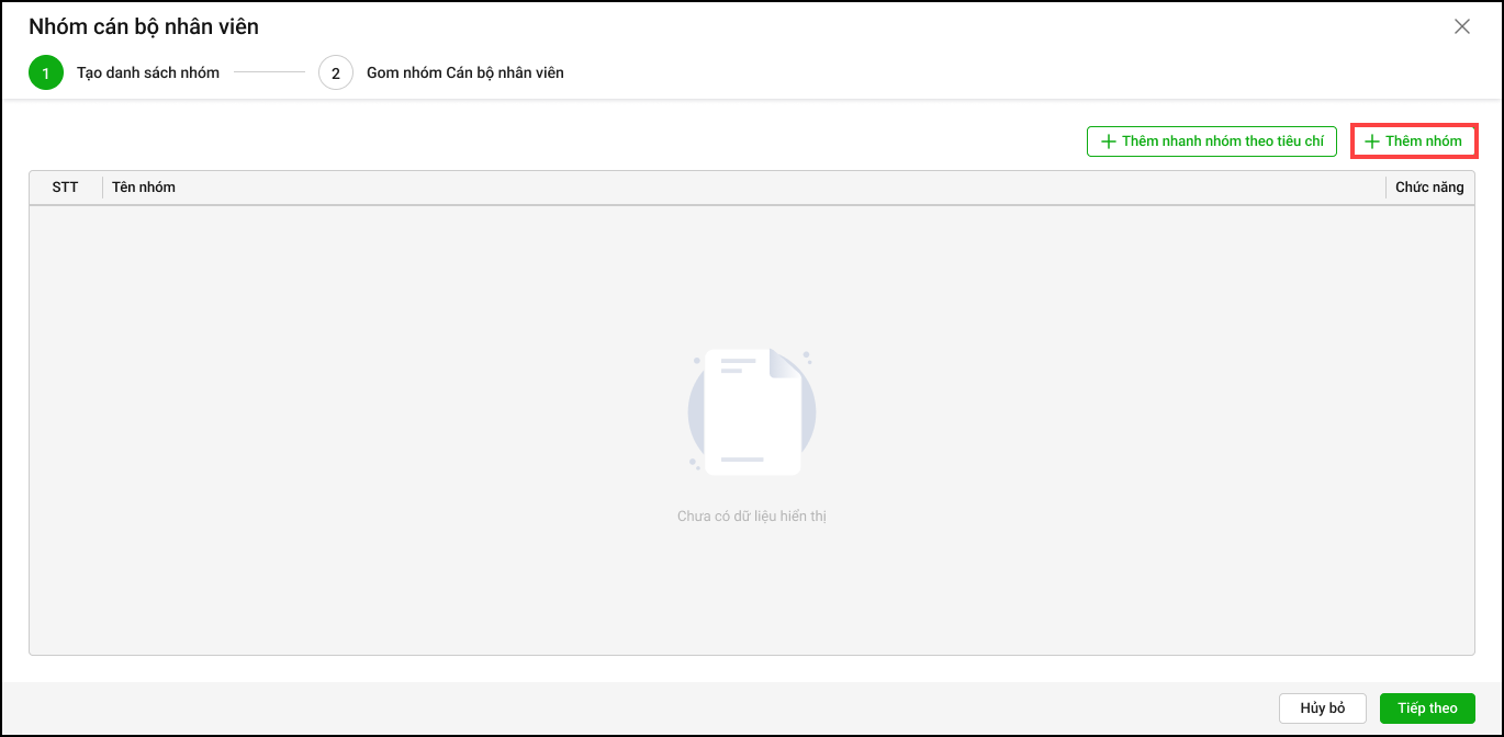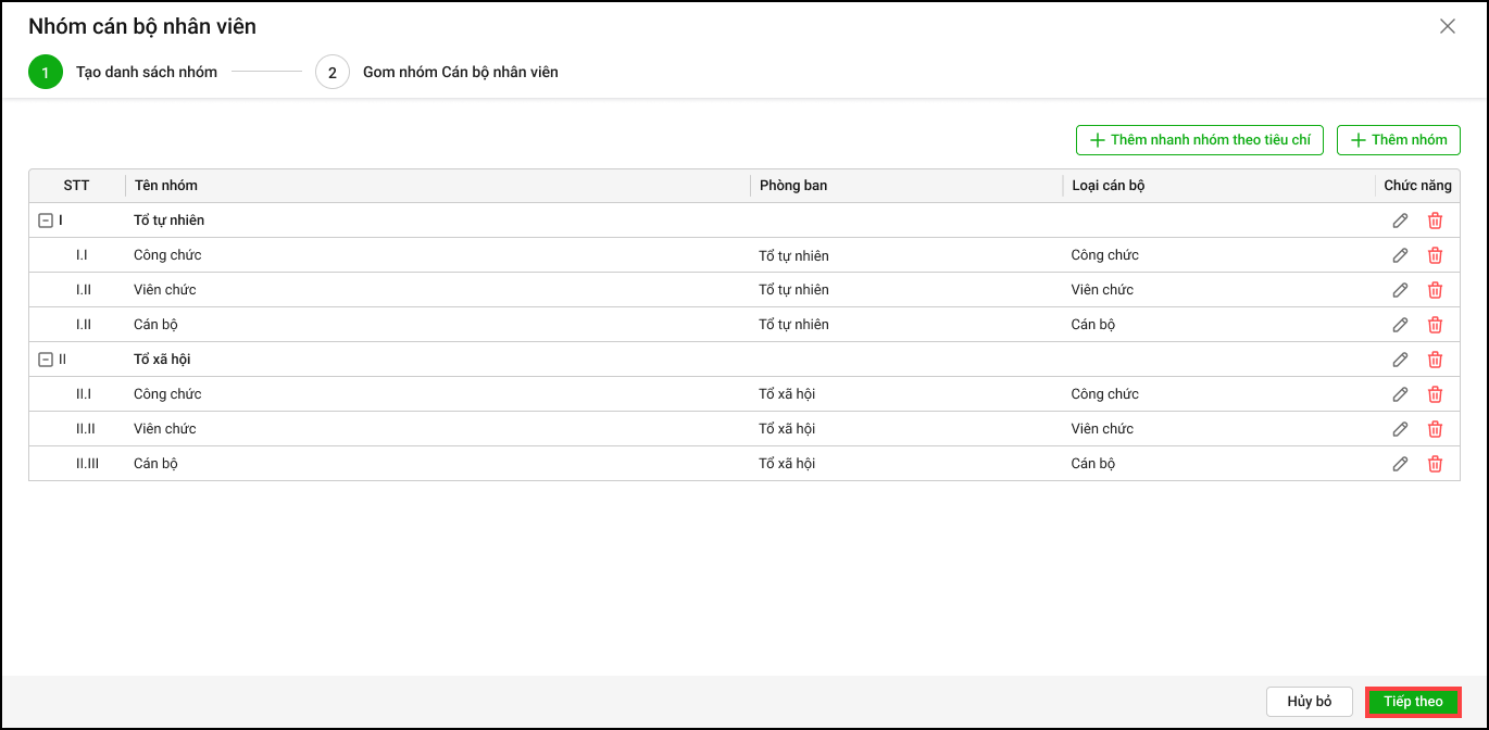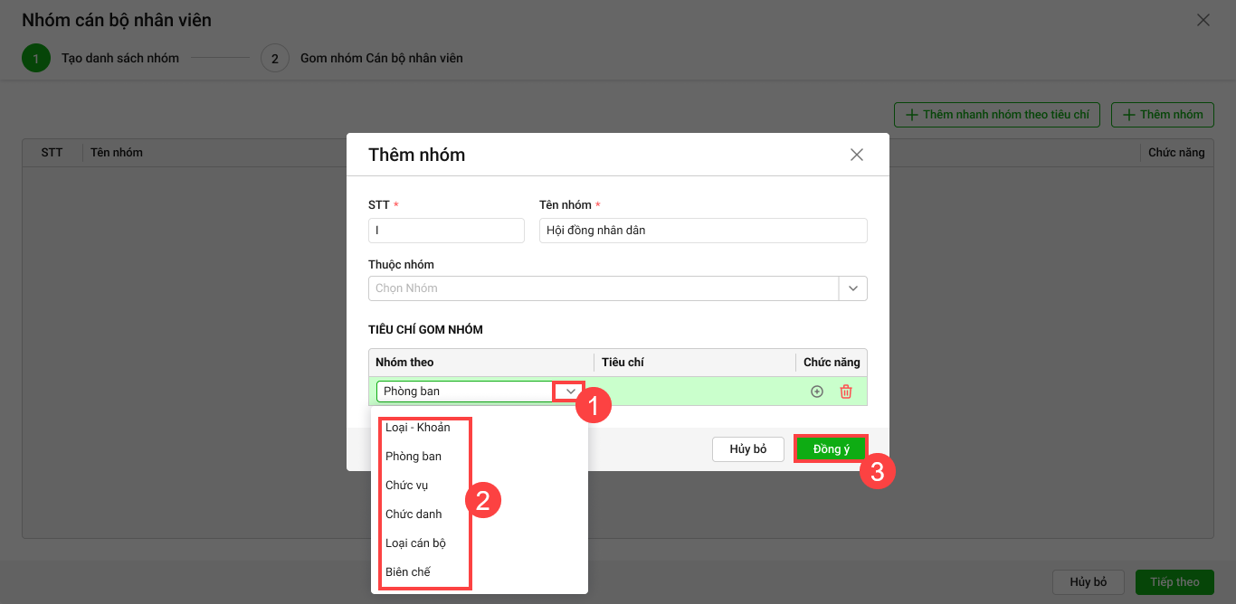 - Anh/chị tích chọn Sử dụng cả mẫu nhóm CBNV đó nhấn Đồng ý