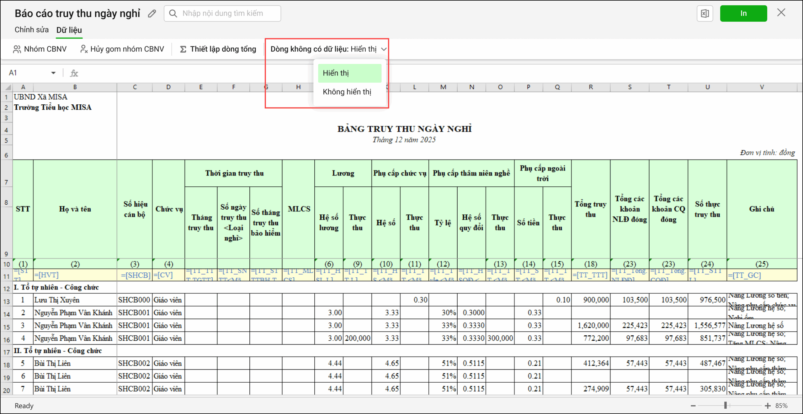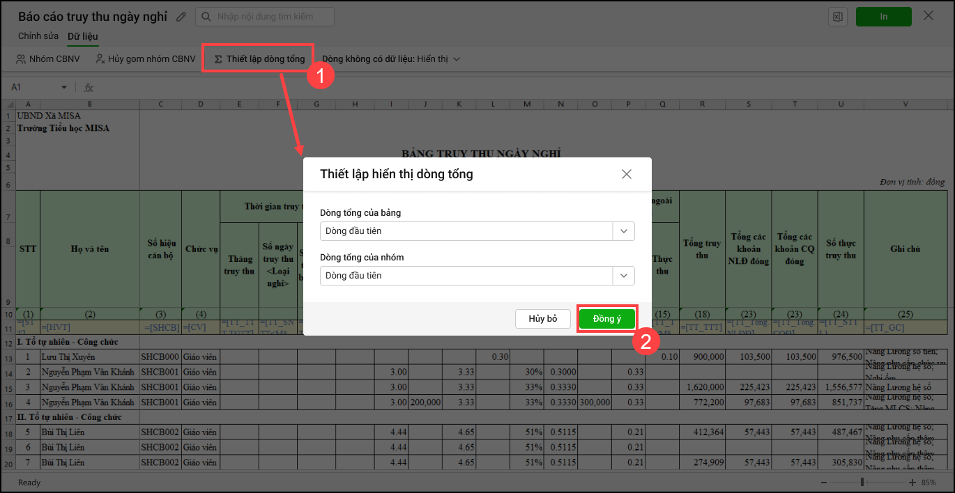 I. Sửa mẫu báo cáo truy thu ngày nghỉ