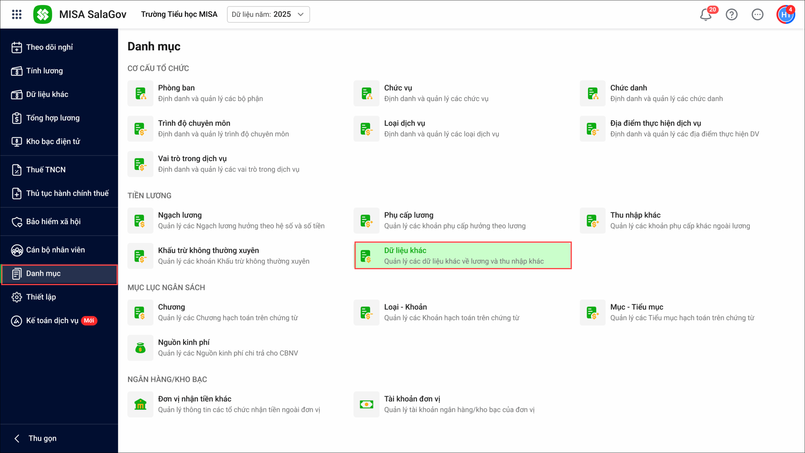 - Vào Danh mục, chọn Dữ liệu khác.