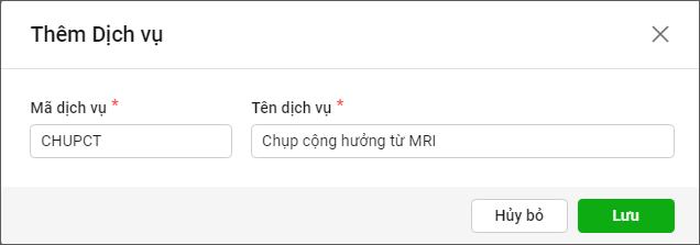 Bước 3: Nhập Mã dịch vụ, Tên dịch vụ rồi nhấn Lưu.