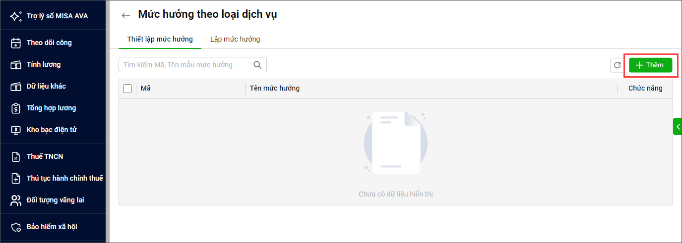 - Vào mục Lập mức hưởng. Nhấn Thêm.
