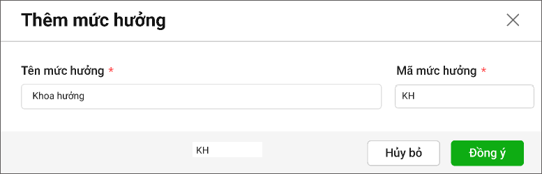 - Nhập Tên mức hưởng. Nhấn Đồng ý.