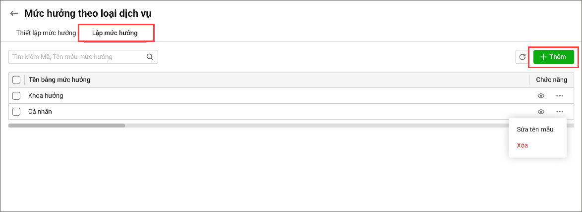 2.2. Thiết lập mức hưởng theo loại dịch vụ