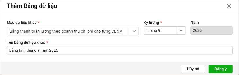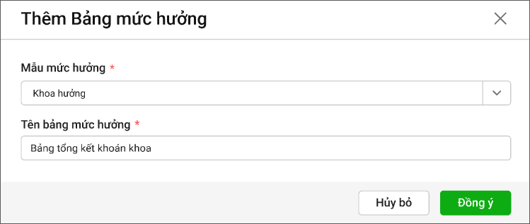 - Chọn Mẫu mức hưởng, nhập Tên bảng mức hưởng. Nhấn Đồng ý.