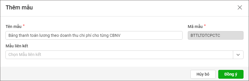 - Nhập Tên mẫu, chọn Mẫu liên kết (nếu có). Nhấn Đồng ý.