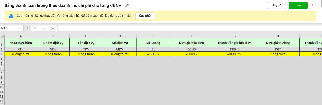 *Lưu ý: Trường hợp cần sửa lại cột/công thức, bạn cần thực hiện thiết lập lại mẫu ở Bước 1.