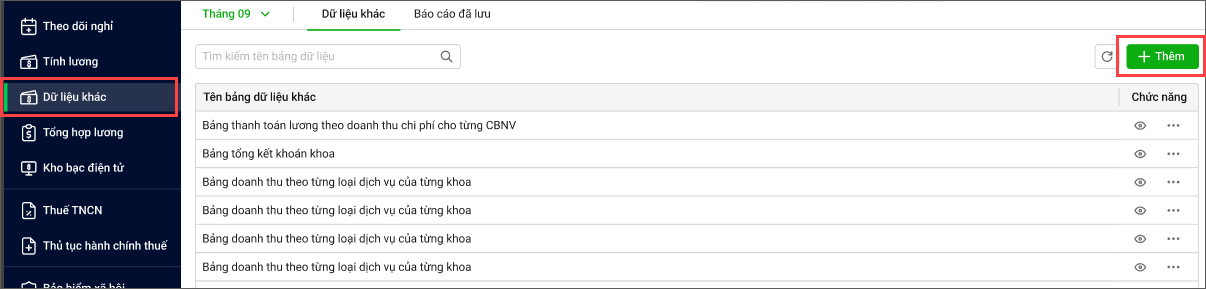 - Vào mục Dữ liệu khác. Nhấn Thêm.